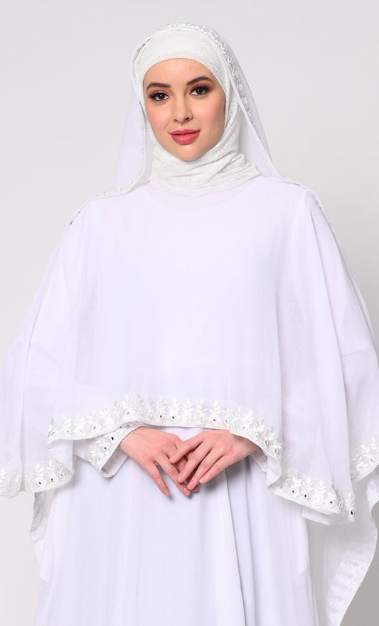 Timeless Beauty 3Pc White Embroidered Abaya and Dupatta
