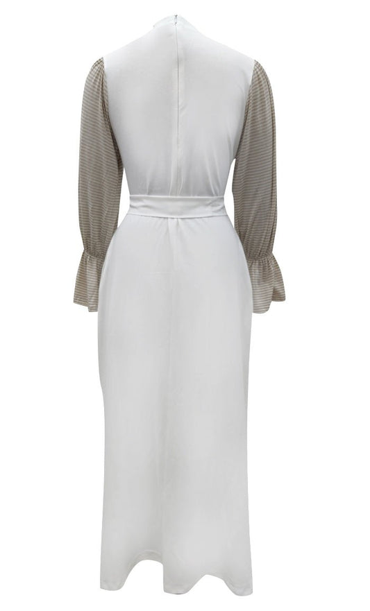 Everydaywear White And Sand Cotton Jersey Abaya With Pockets