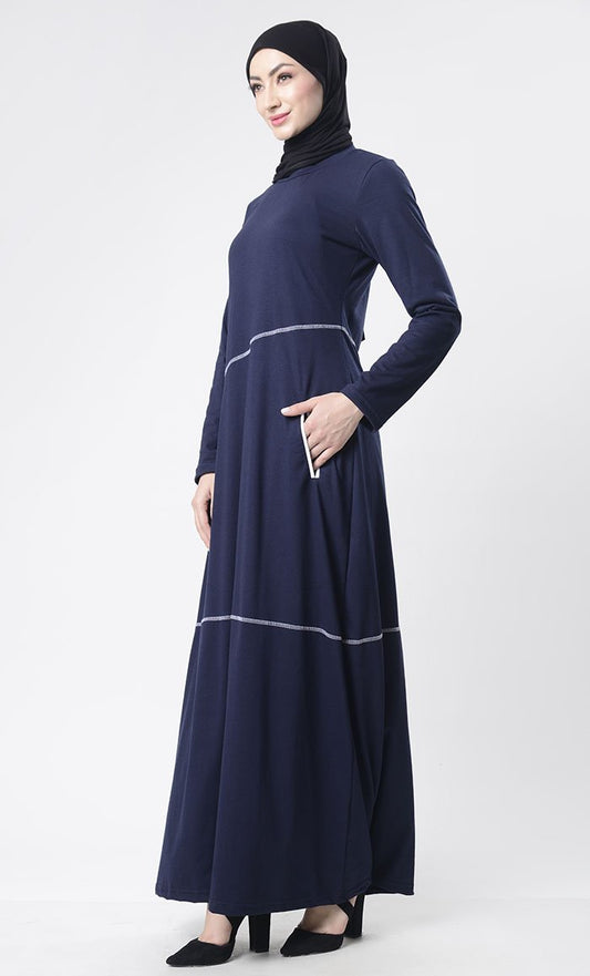 Simple Top Stitch Detailed Abaya With Pockets