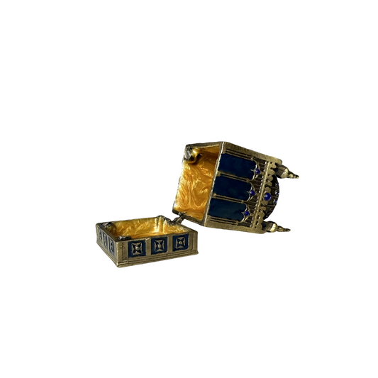 Mini Mosque Box with Blue Gems and Golden Interior