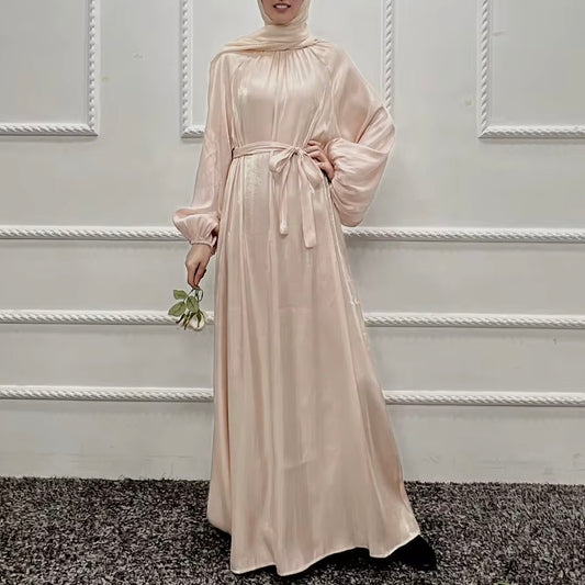 Abira Sequin Modest Neckline Long Sleeve Embellished Dress With Side Skirt