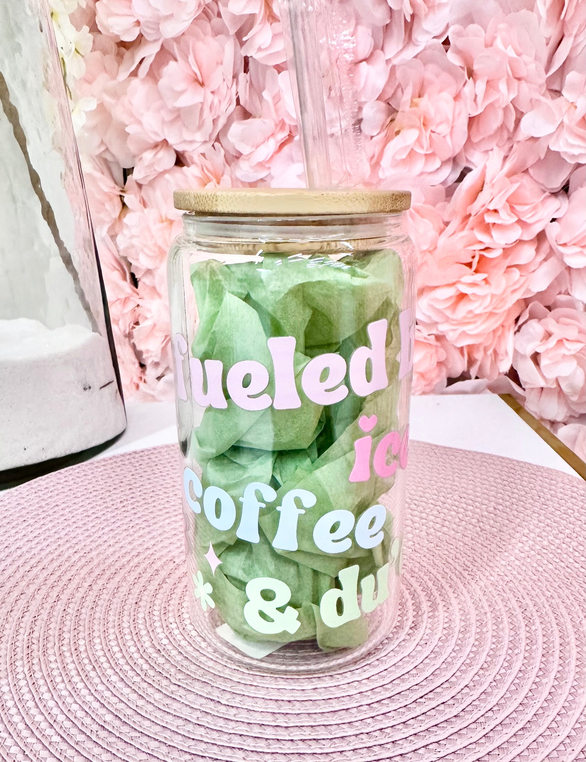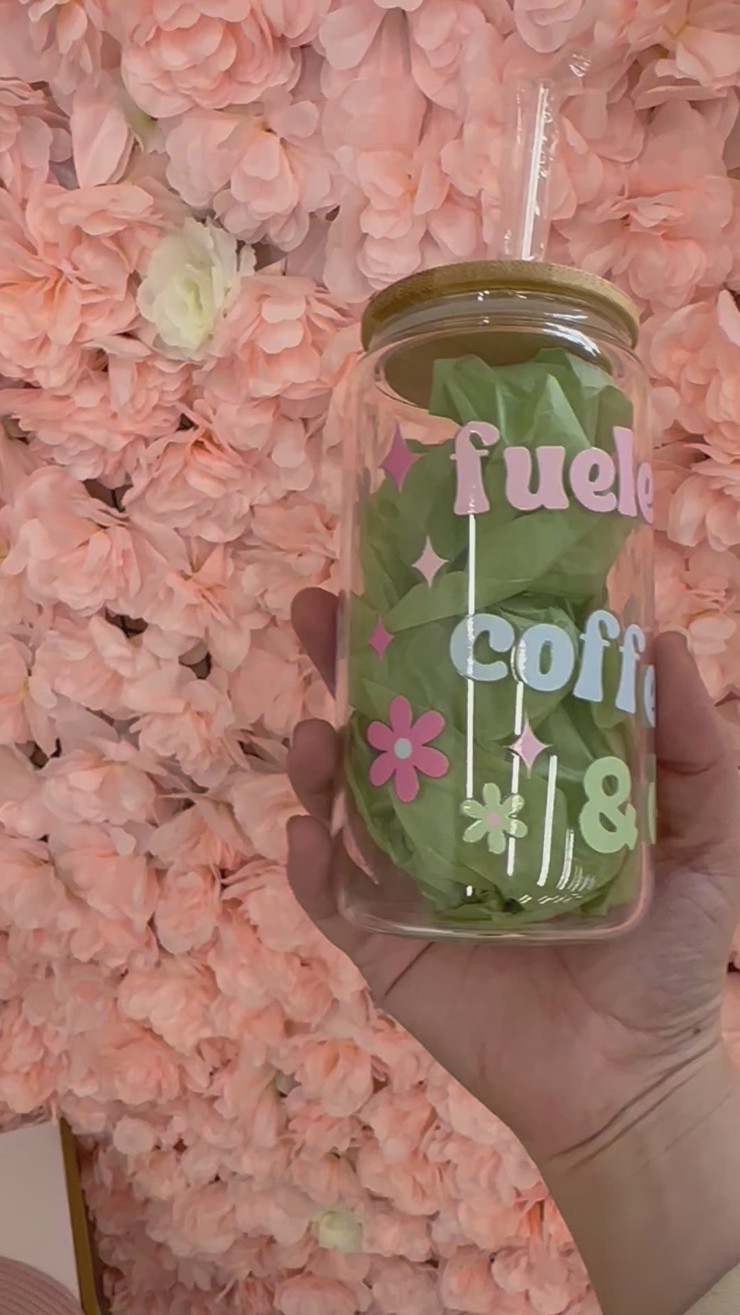 Start your day with a refreshing 16oz coffee in this stylish glass with a bamboo lid and reusable plastic straw. Keep your drink cool as you take on the day. Not dishwasher safe.