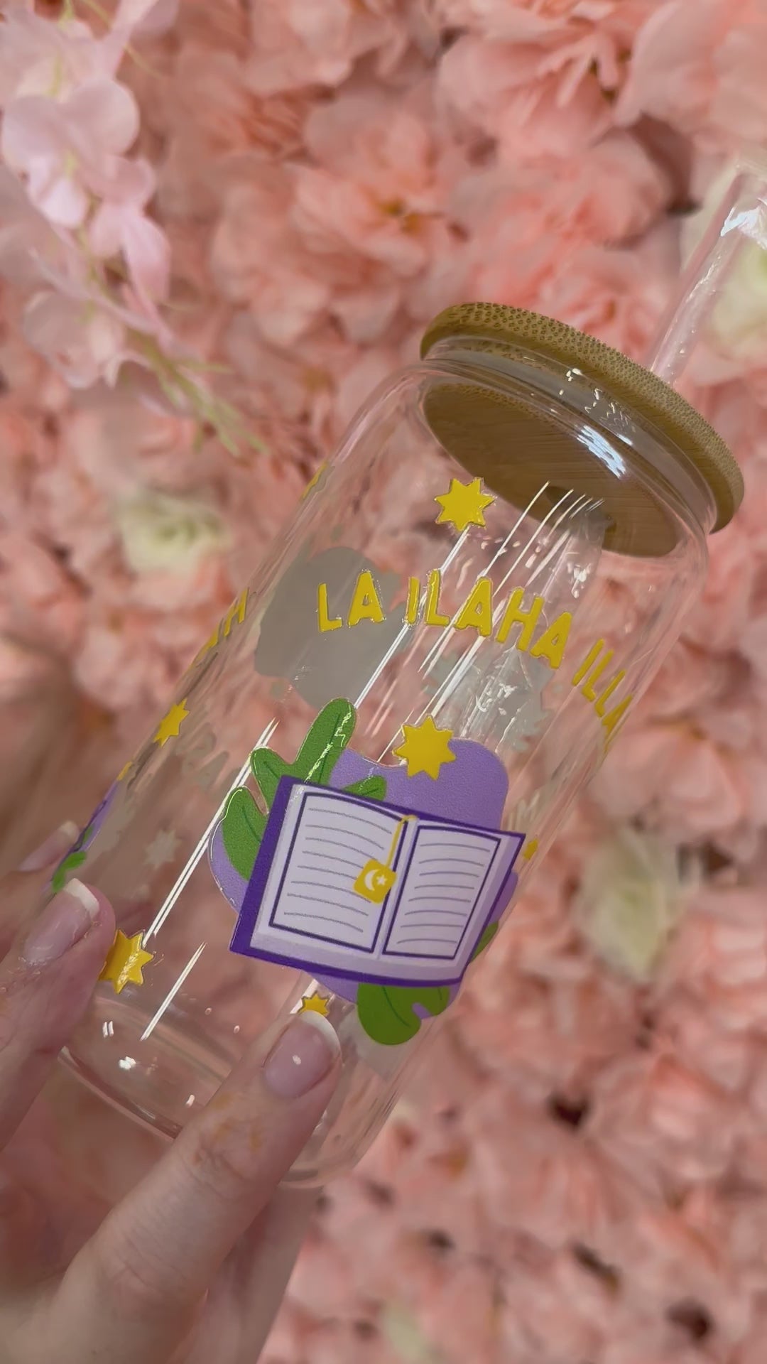 Start your day with a refreshing 16oz coffee in this stylish glass with a bamboo lid and reusable plastic straw. Keep your drink cool as you take on the day. Not dishwasher safe.