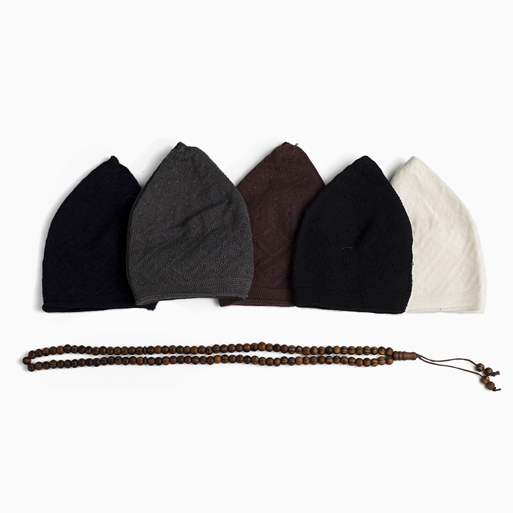 ABDEEZ Prayer Cap Collection with Wodeen Tasbeeh - Five Classic Colors for Every Occasion