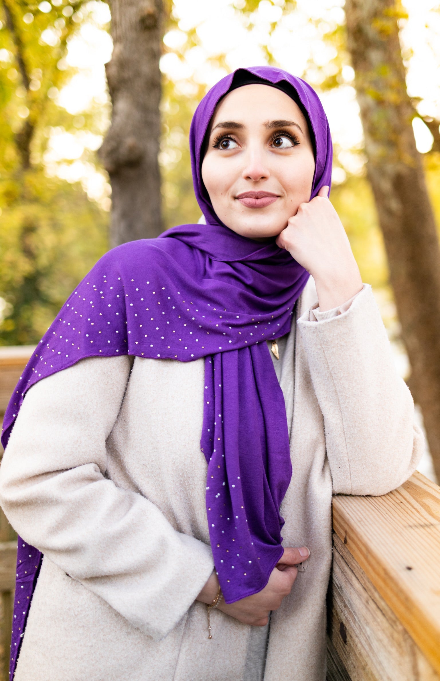 Beaded Jersey Hijab - Grape Purple