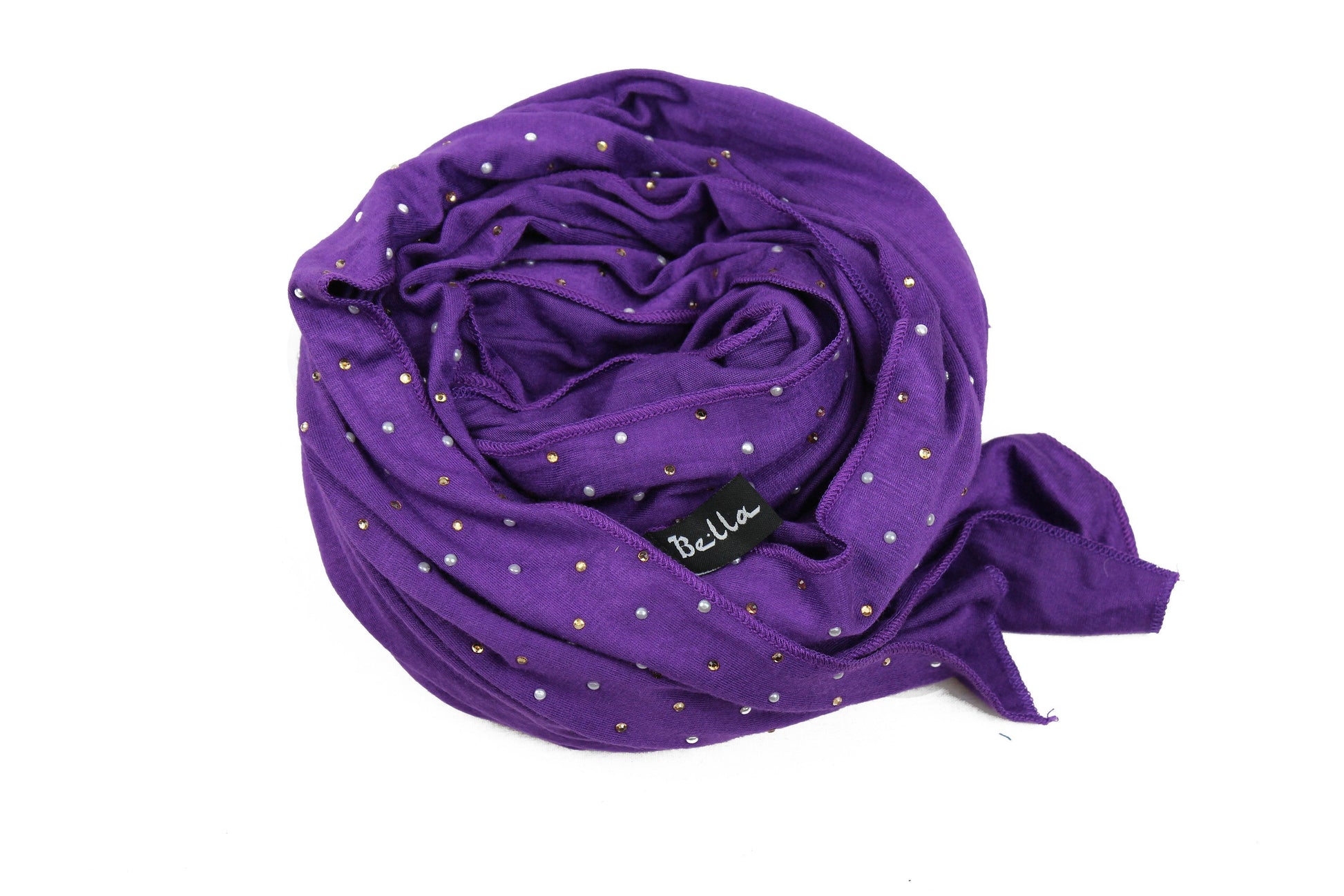 This Beaded Jersey Hijab features elegant beading details on durable, lightweight fabric. Its grape purple hue provides a soft and versatile look for any occasion. Crafted from breathable material, this hijab promises comfortable coverage all day.