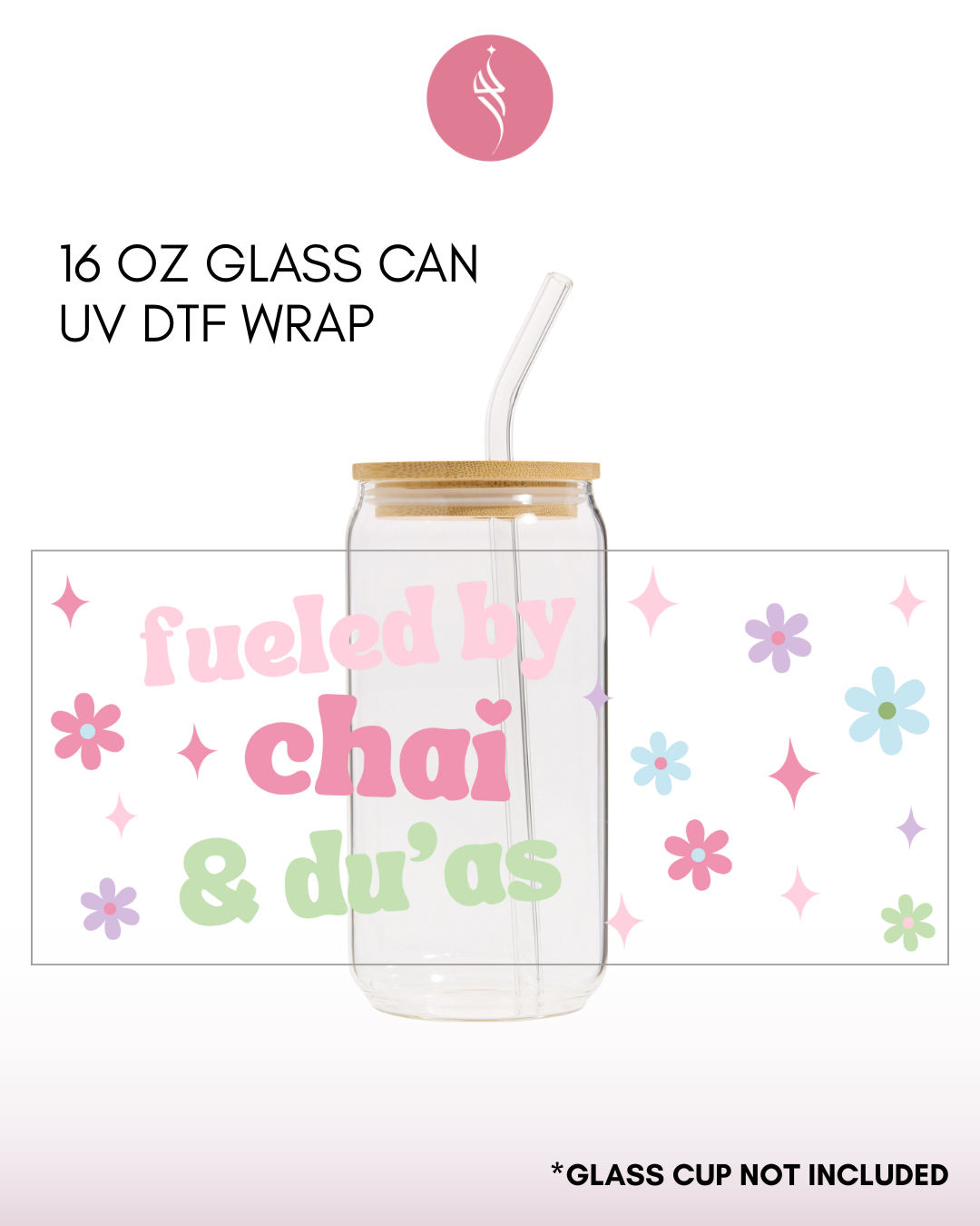 This listing is for one UV DTF adhesive sticker (recommended for 16oz Glass size)