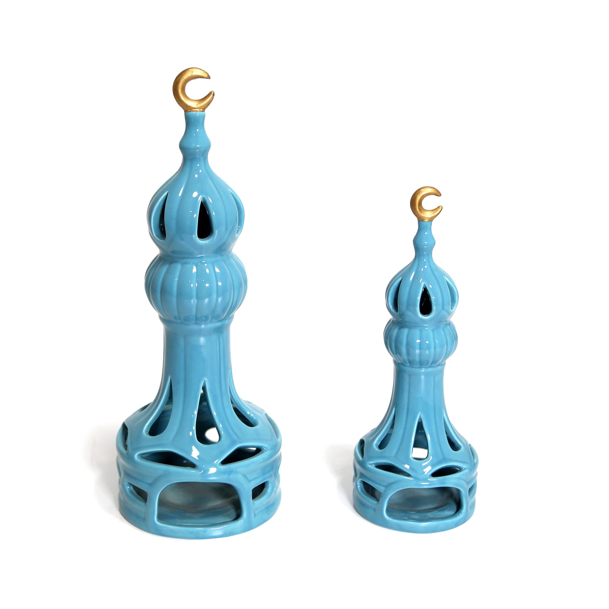 Minaret Tower figurine is also a candle holder. It is the perfect addition to a Ramadan decorated corner. It comes in a glassy finish.