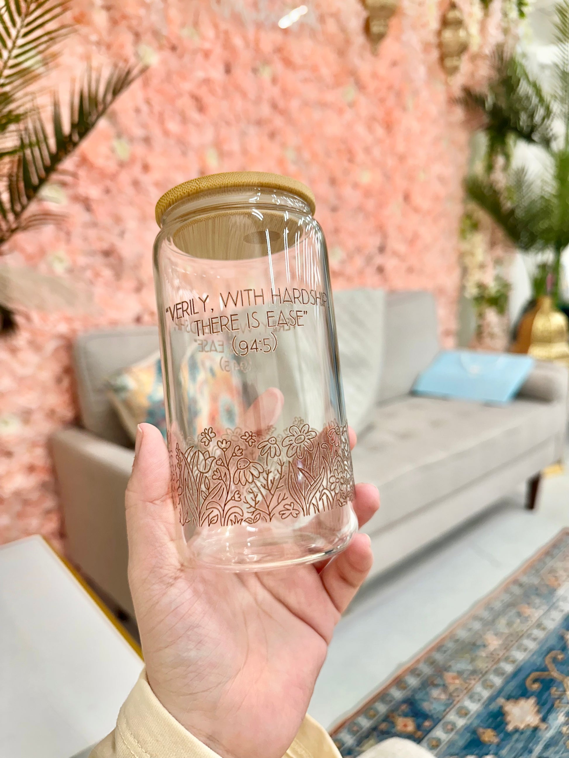 Start your day with a refreshing 16oz coffee in this stylish glass with a bamboo lid and reusable plastic straw. Keep your drink cool as you take on the day. Not dishwasher safe.