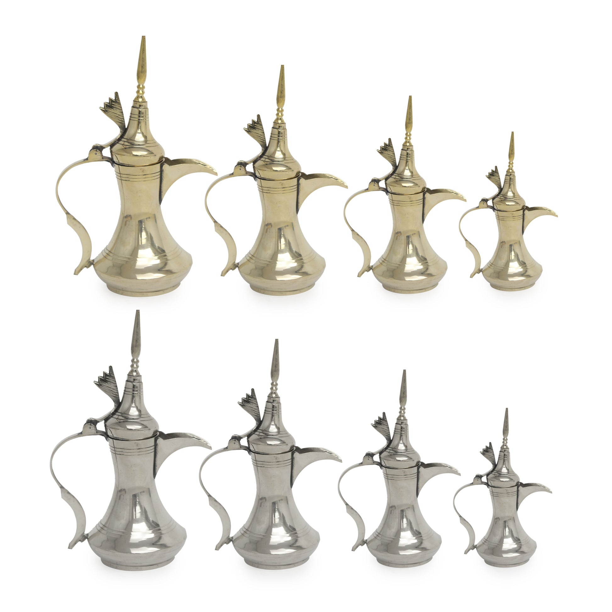 Coffee Pot or as known, Dallah, in light silver and gold colors.