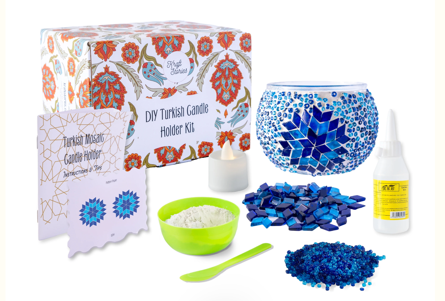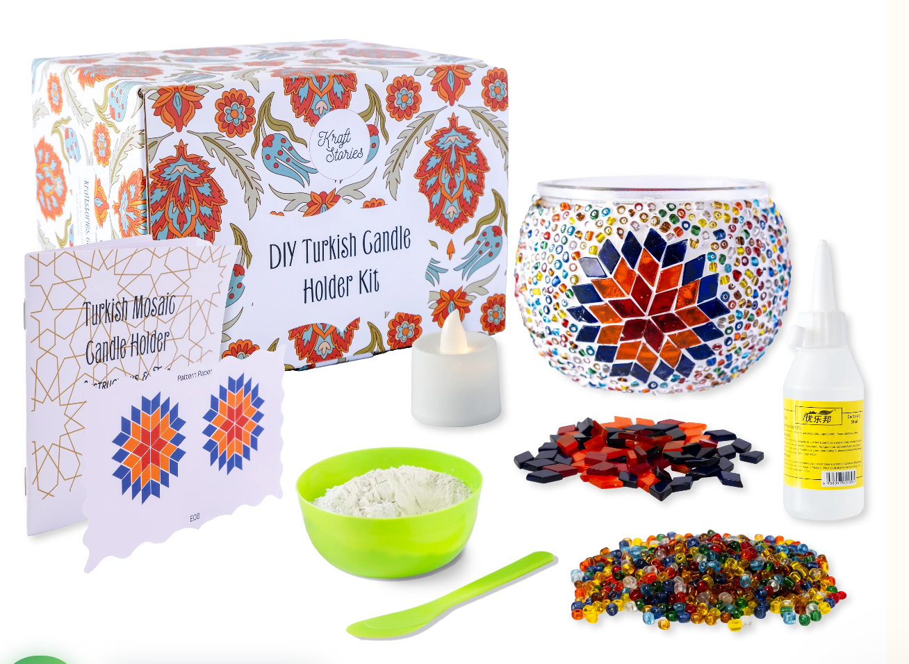 Use a simplified geometric template to create your own Turkish candle holder. The craft kit makes it easier than ever for you to have a truly unique piece of decor to brighten up your home. Turn an urge to decorate into a lovely decoration.