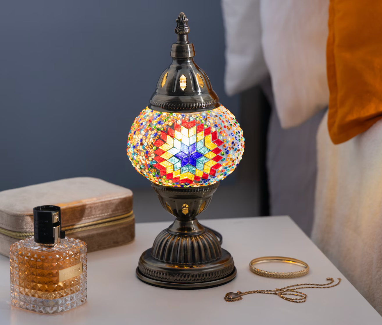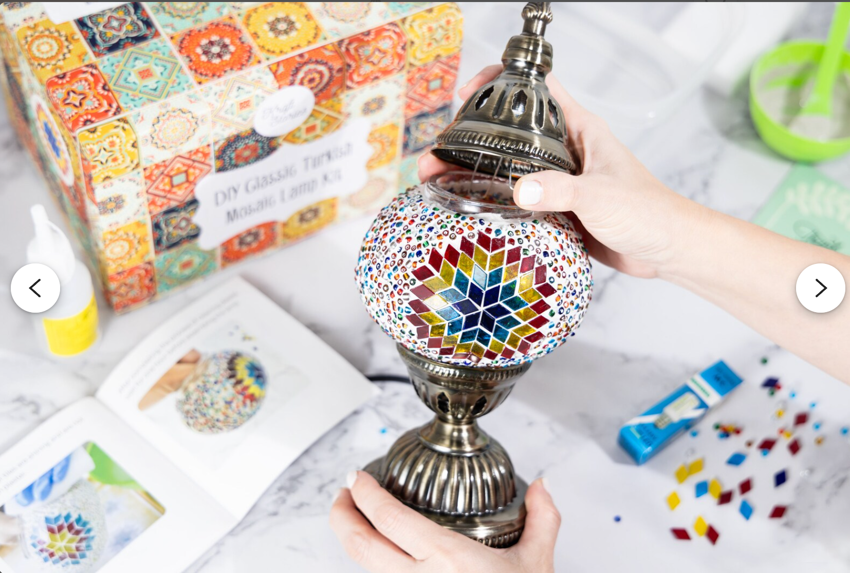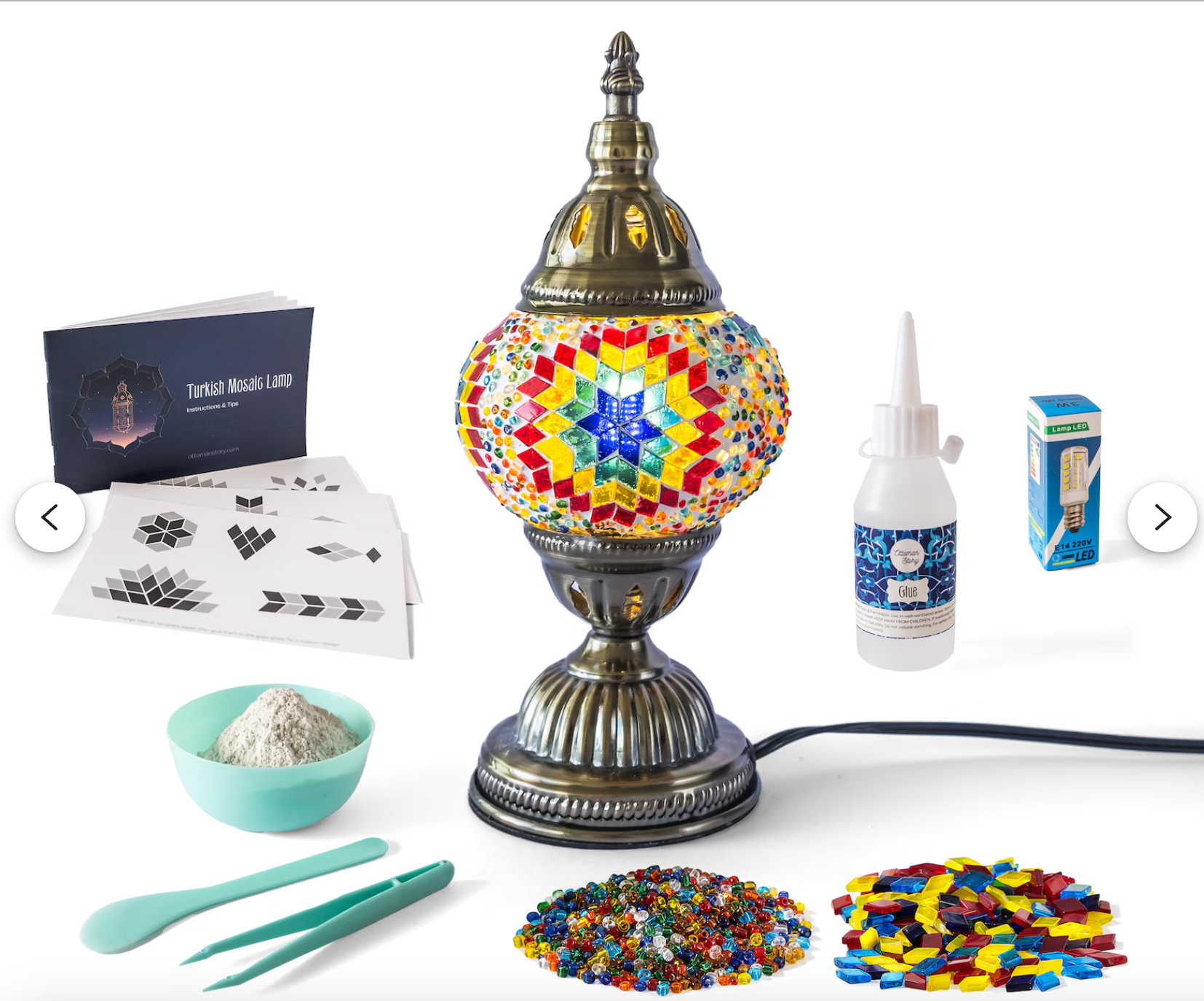 Use a simplified geometric template to create your own Turkish mosaic lamp. The craft kit makes it easier than ever for you to have a truly unique piece of decor to brighten up your home. Turn an urge to decorate into a lovely decoration.