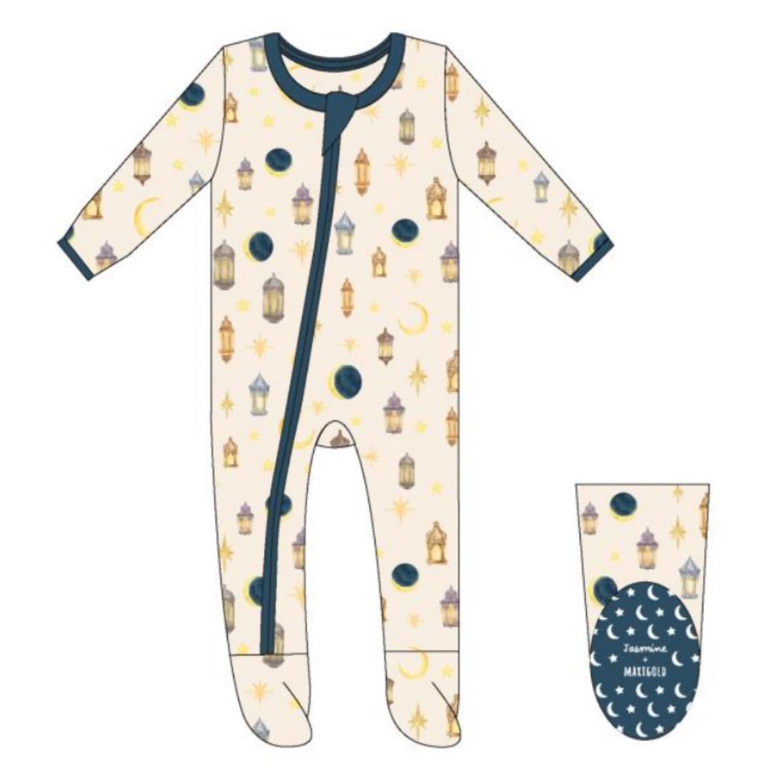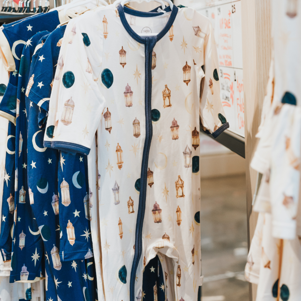 Light the night with Jasmine + Marigold’s newest print. Make memories and celebrate Eid with your entire family in Jasmine + Marigold’s stretchy and soft bamboo Eid and Ramadan pajamas. Our new collection features the phases of the moon, lanterns, and stars to truly have a starry Ramadan.