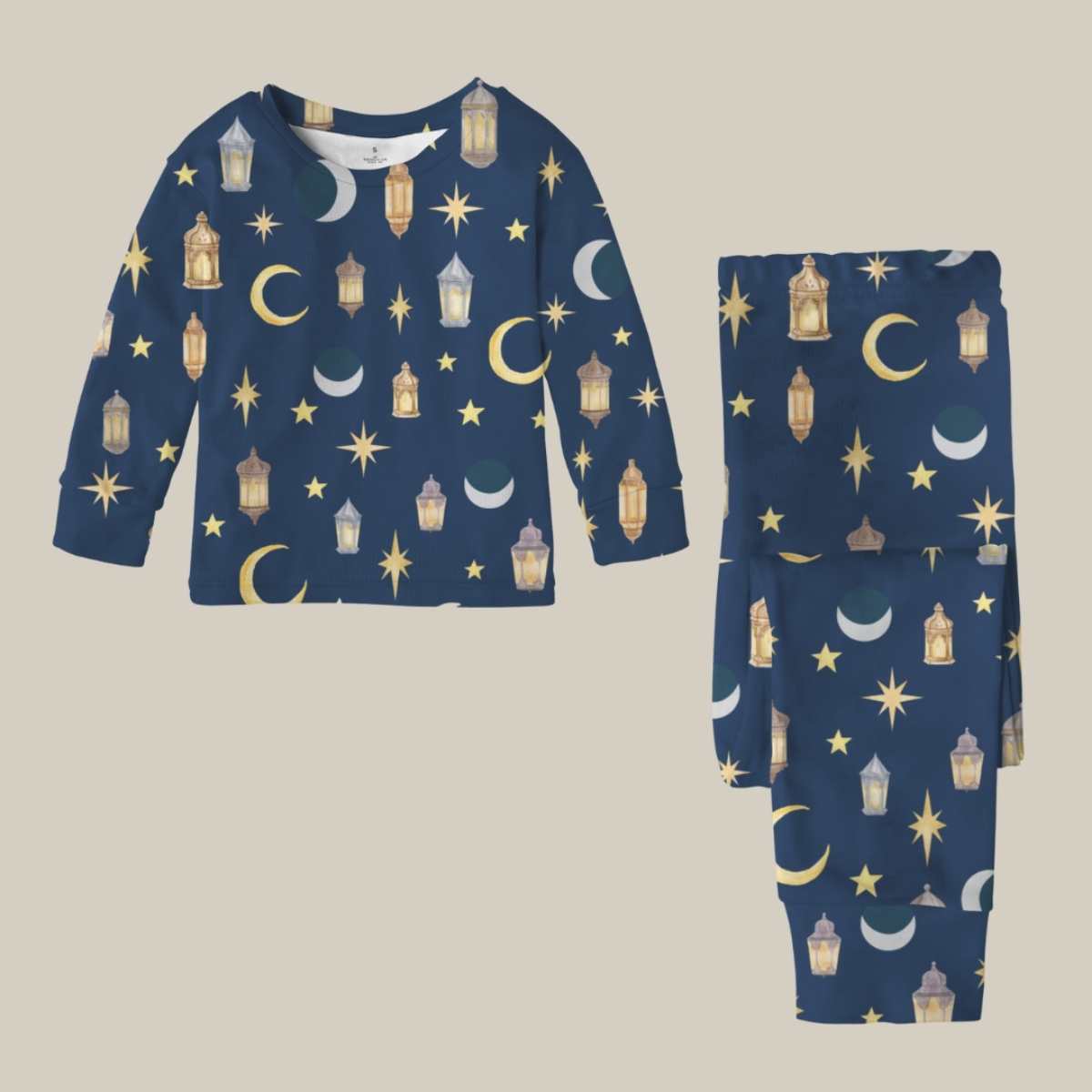 Light the night with Jasmine + Marigold’s Ramadan and Eid Pajamas. Make memories and celebrate Ramadan with your entire family in Jasmine + Marigold’s stretchy and soft bamboo Eid and Ramadan pajamas. Our new collection features the phases of the moon, lanterns, and stars to truly have a starry Ramadan. Available in two colorways, oat (dawn) and navy (dusk). Celebrate Eid with your entire family in our matching pajama sets.
