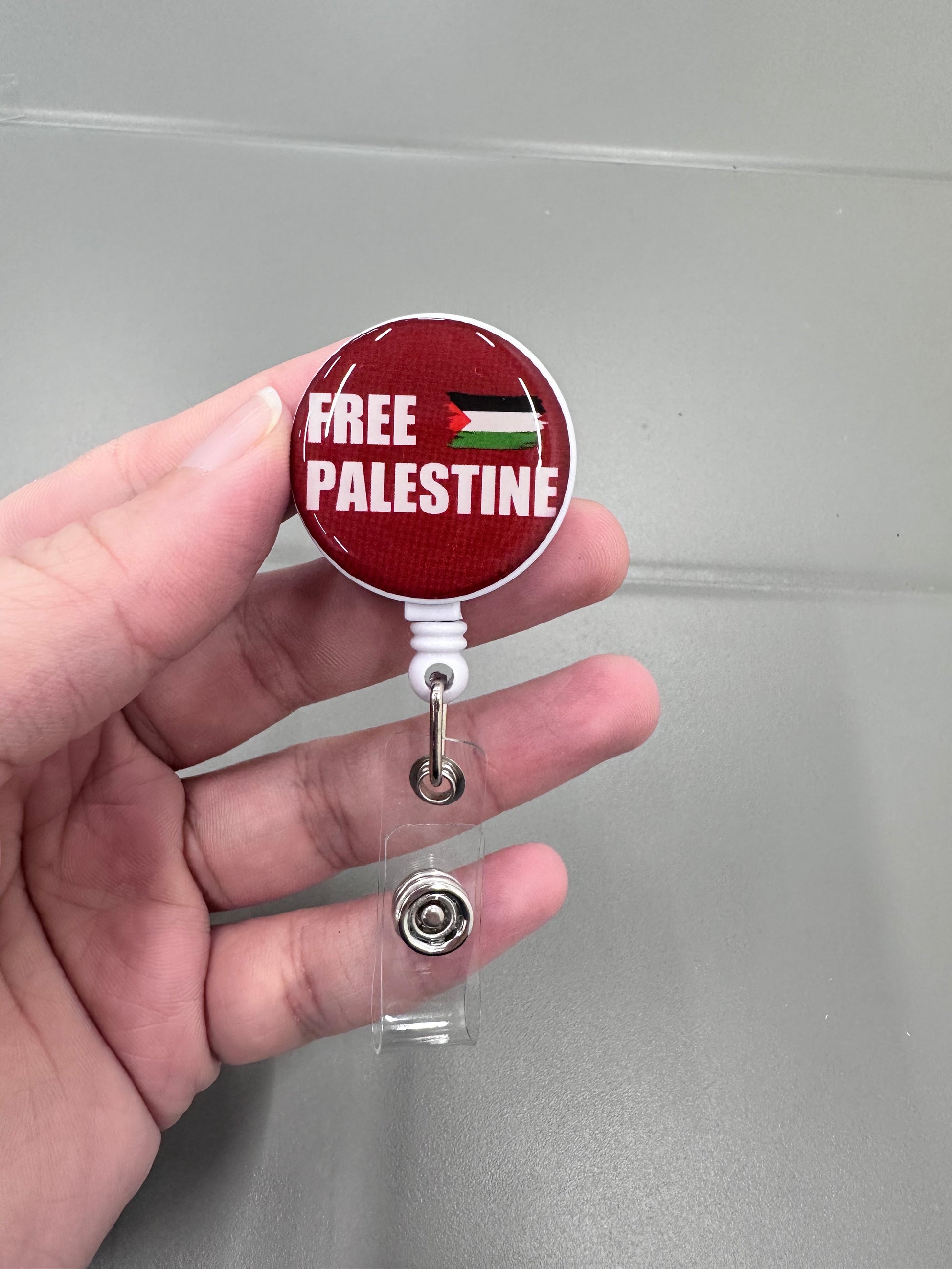 Free Palestine retractable ID holder