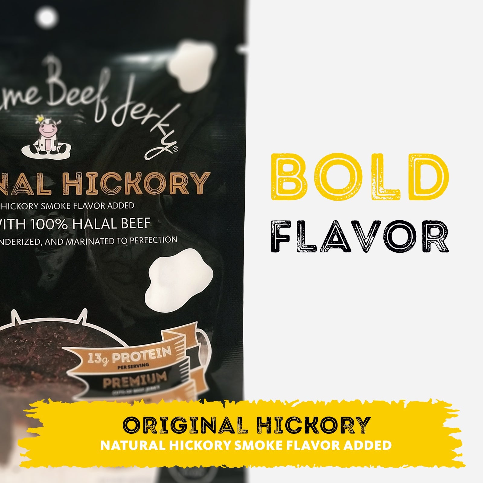 HALAL BEEF JERKY, MARINATED BEEF JERKY, HANDCRAFTED GOURMET MEAT SNACKS, 2.5 OZ (ORIGINAL HICKORY)