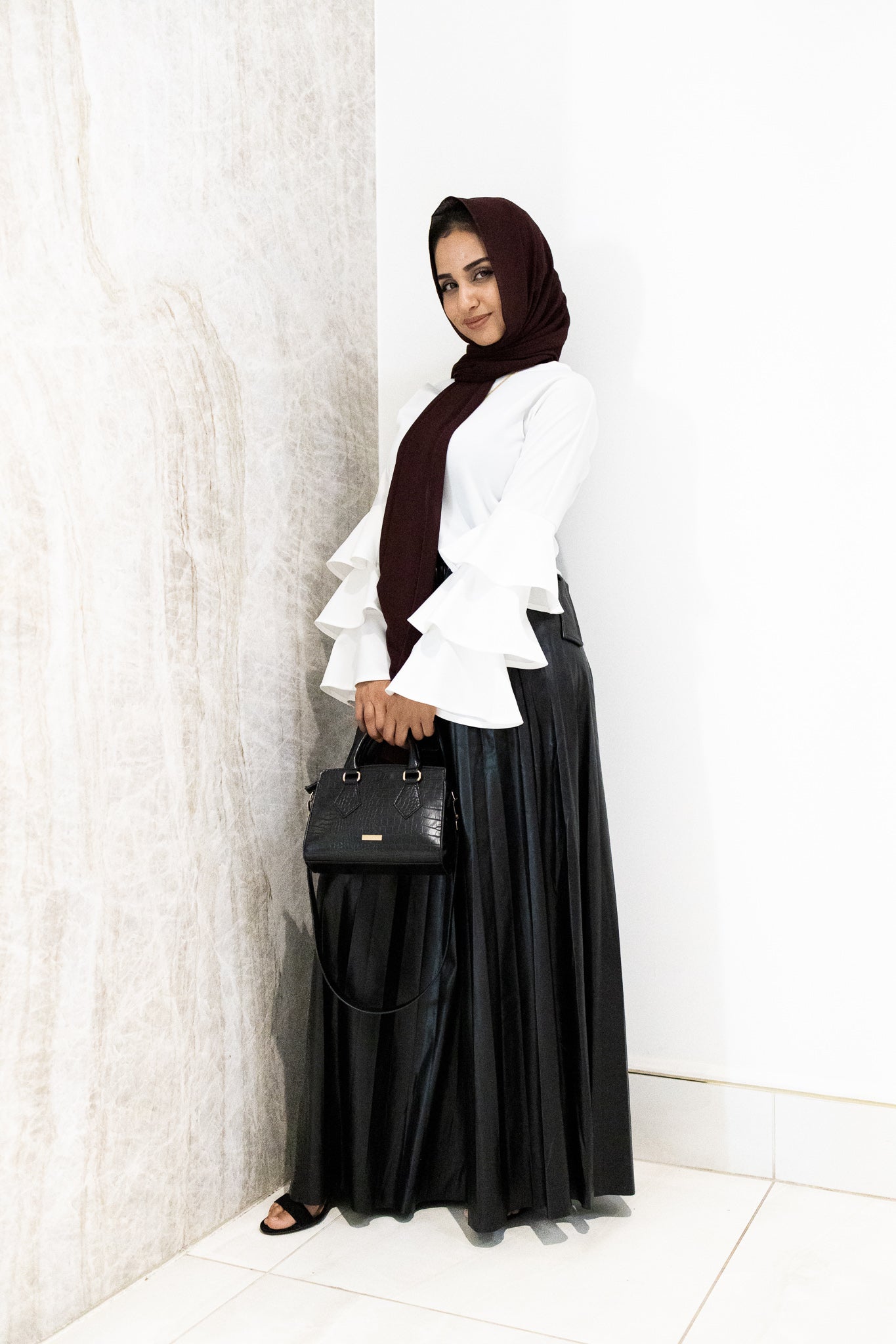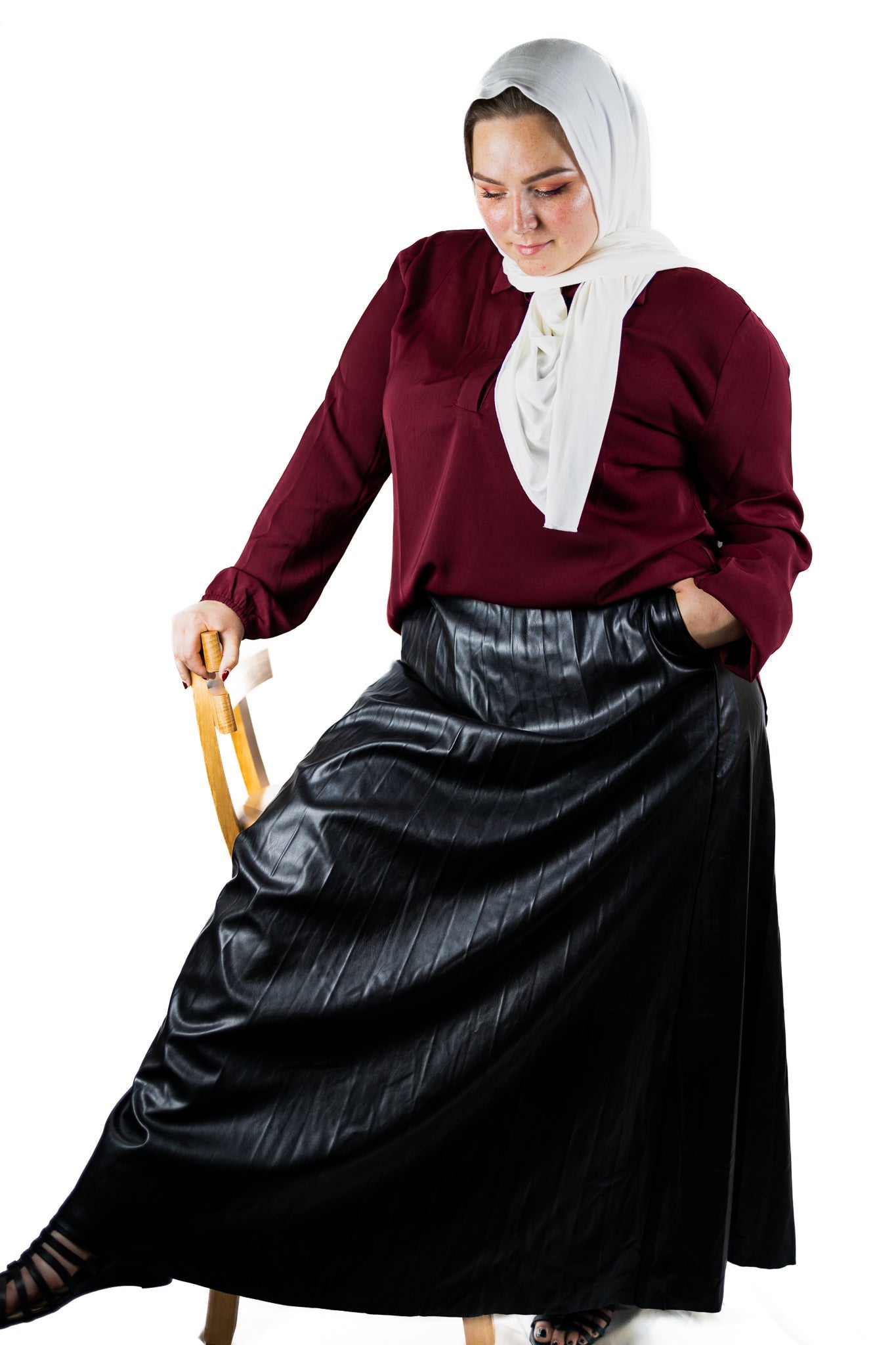 This fully lined maxi skirt sits at the slimmest part of the waist before falling to a floor-skimming hem. Pair it with a cute top to complete the look for your next special occasion or evening event. Made with vegan leather, this eco and animal friendly skirt features small pleats.
