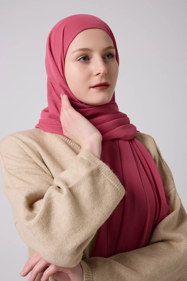 Secure All-Day Wear: The combination of the secure full-coverage underscarf and flowing chiffon layer ensures your hijab stays in place all day without constant readjustment.