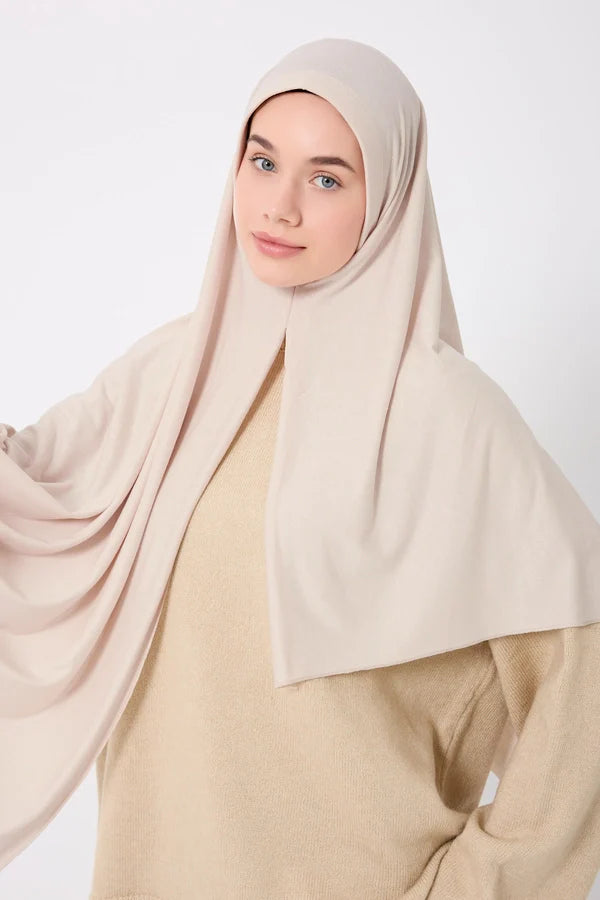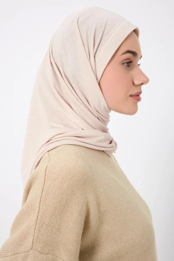 Structured Front: which gives the hijab a defined, lifted silhouette at the front especially around the forehead rather than laying flat.
