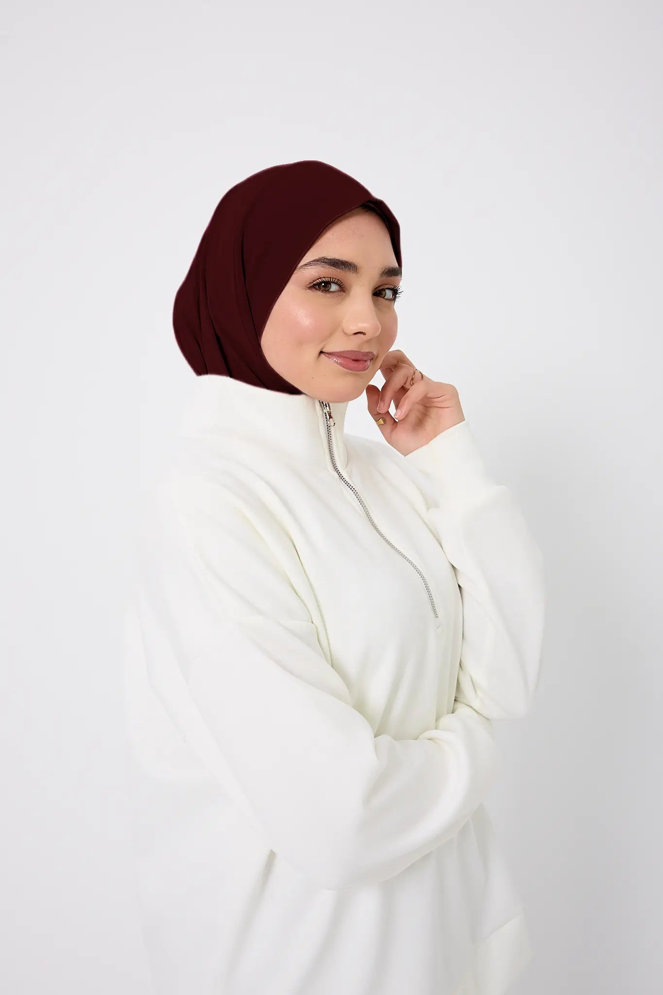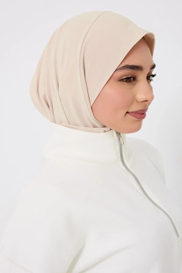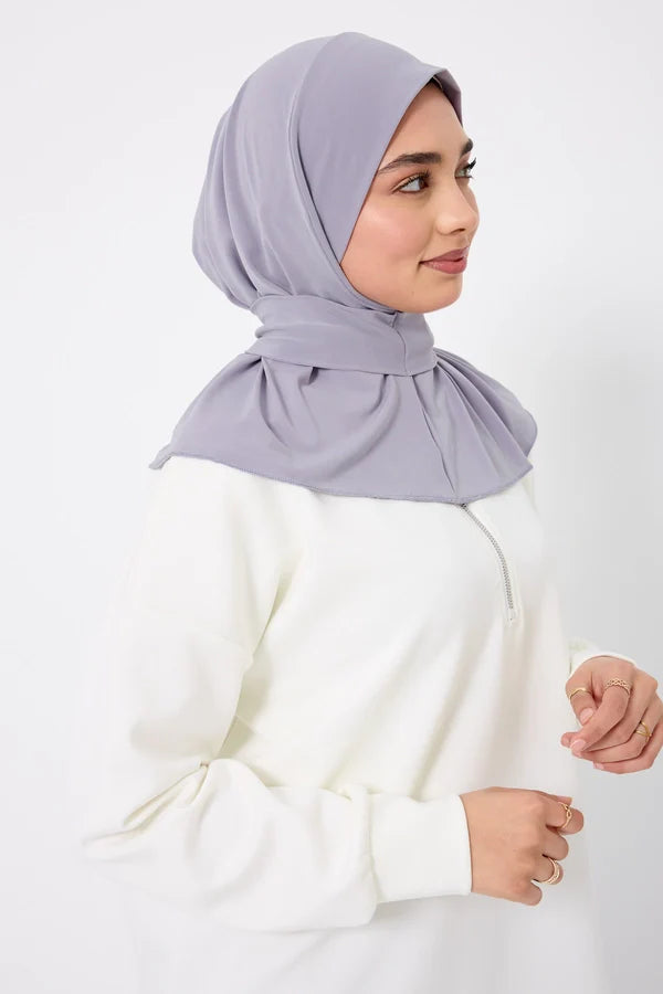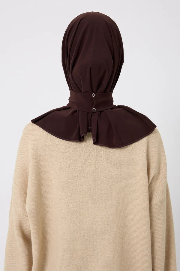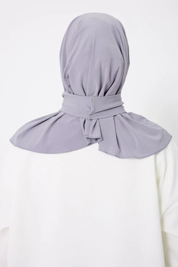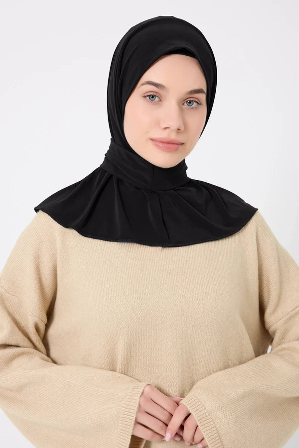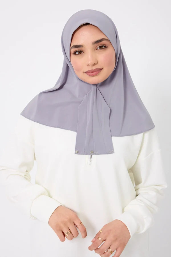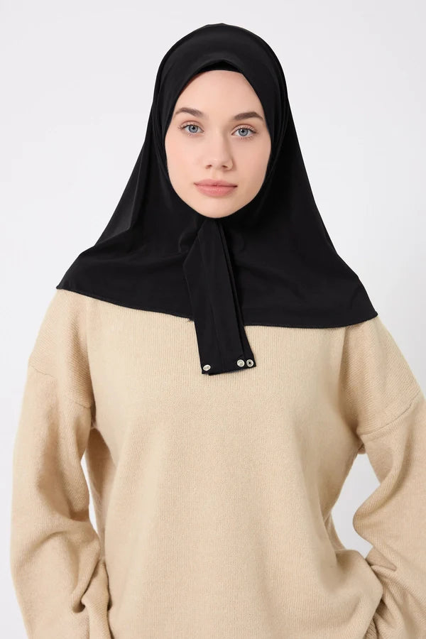 Designed with a secure snap button closure at the back, this slip on hijab is ideal for sports, workouts, school, daily errands, and even travel. It offers a snug, flattering fit without the need for an undercap, pins, or bulky layers.
