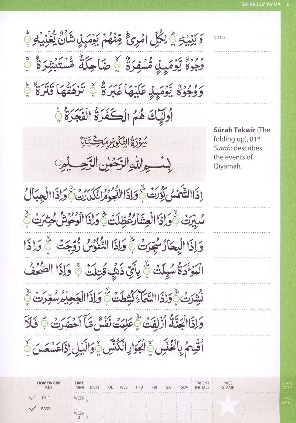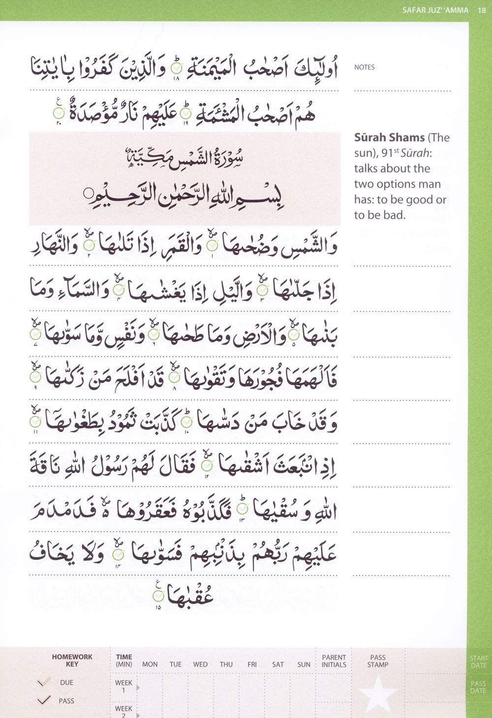 The Safar Juz Amma's unique marking code, diary and checklist are elements that have been designed to keep track of a student's progress and to enhance communication between students, parents and teachers.