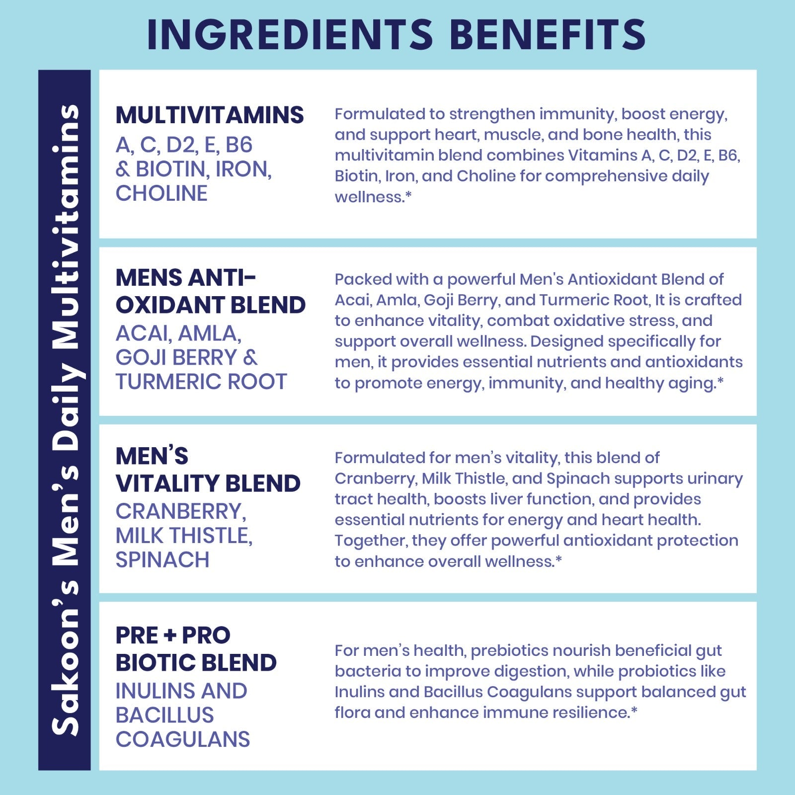 A comprehensive and expertly-designed formula, our Mens Multi Vitamin + Pre+Probiotics Gummies provide the essential nutrients and digestive support men need for optimal health. Each gummy contains a precise blend of vitamins, prebiotics, and probiotics for improved gut health and overall wellness.