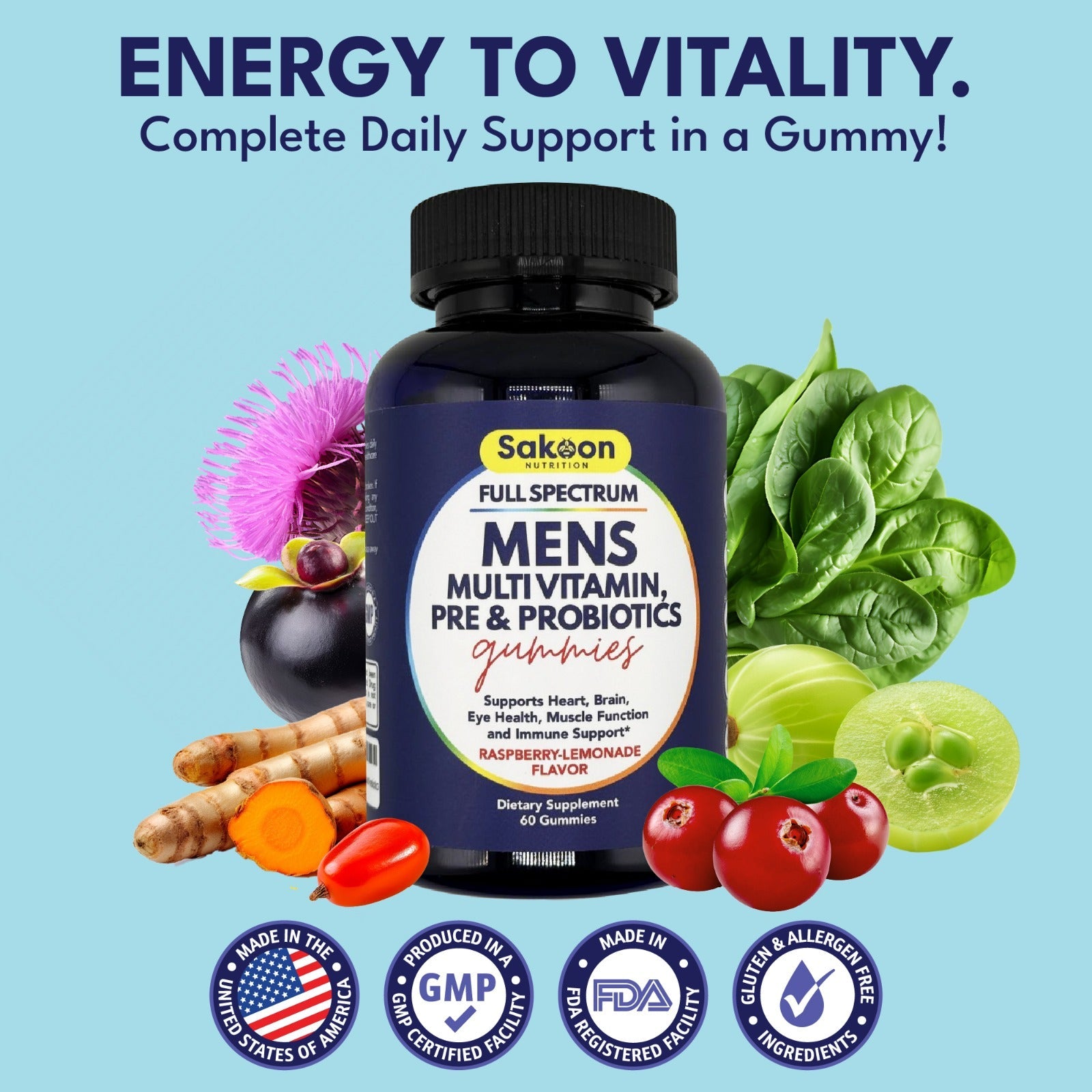 Mens Full Spectrum Multivitamin + Pre+Probiotics Gummies