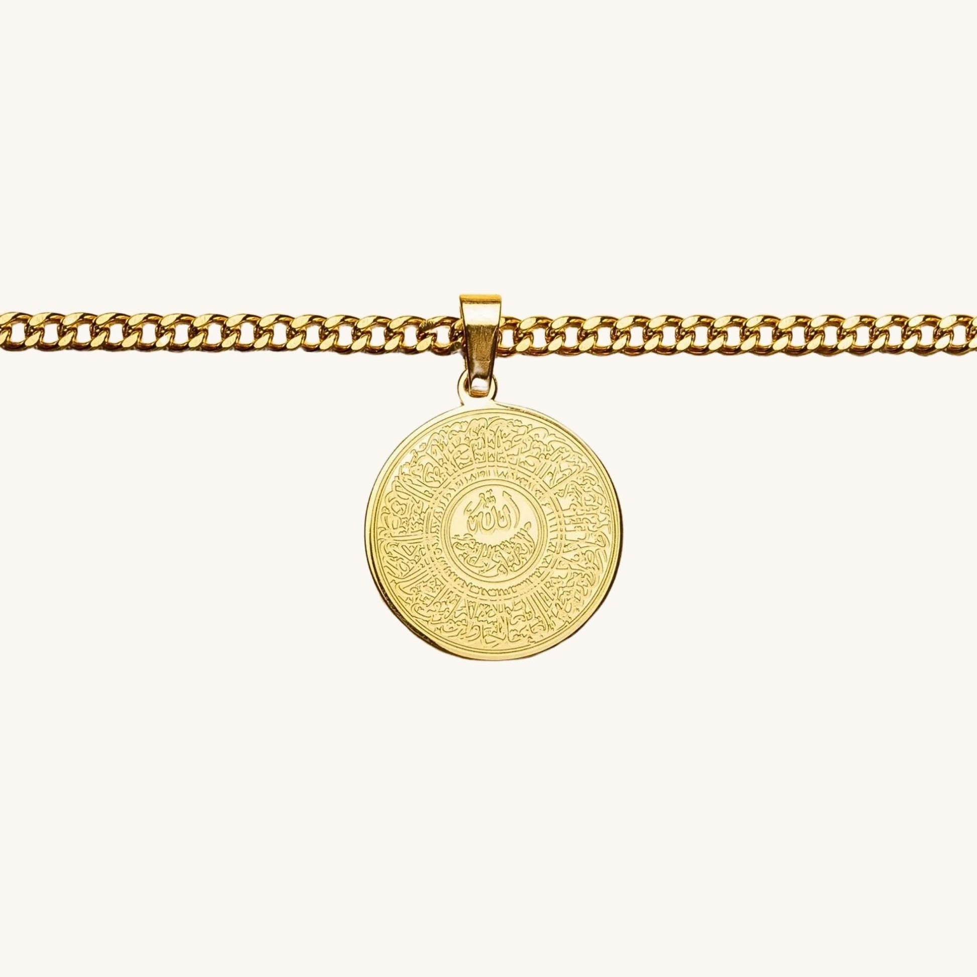 At ZUDO, we worked behind the scenes for 8+ months to perfect this design for you! Our intention behind this piece is for it to be an iconic staple in your daily lives, just like the recitation of the verse itself. Designed in the finest solid stainless steel with 18K plating to ensure longevity.