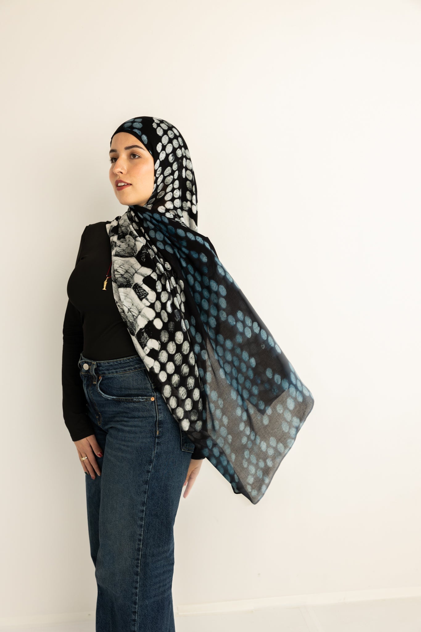Mysterious, bold, and effortlessly chic—the Midnight Serpent Modal Hijab is designed for those who embrace elegance with an edge. Featuring a mesmerizing snakeskin print in deep midnight shades, this hijab blends subtle texture with striking detail, making it a standout piece in any wardrobe. The sleek black and charcoal hues create a sophisticated, modern look that pairs beautifully with both neutral and bold outfits.