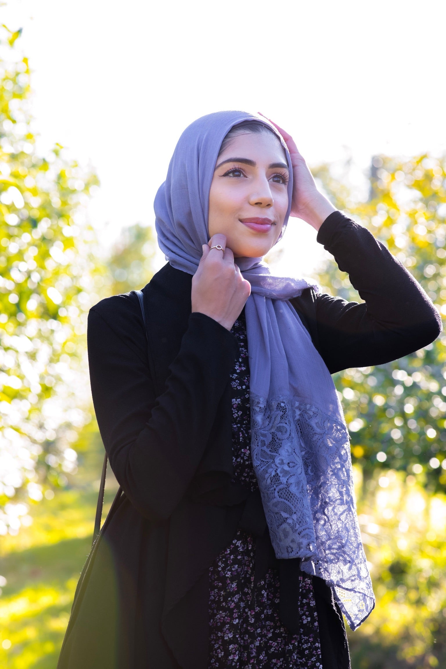 Crafted with our modal fabric, the Modal Lace Hijab features beautiful lace edges on both sides with slight sheen. Modal is one of our highest quality fabrics. With the elegant and natural shine, these hijabs are perfect for every day casual wear or occasion wear. Modal Hijabs drape elegantly and give a natural and luxurious feel. This fabric is also breathable and sweat resistant. This lightweight modal hijab will keep you cool and comfortable!