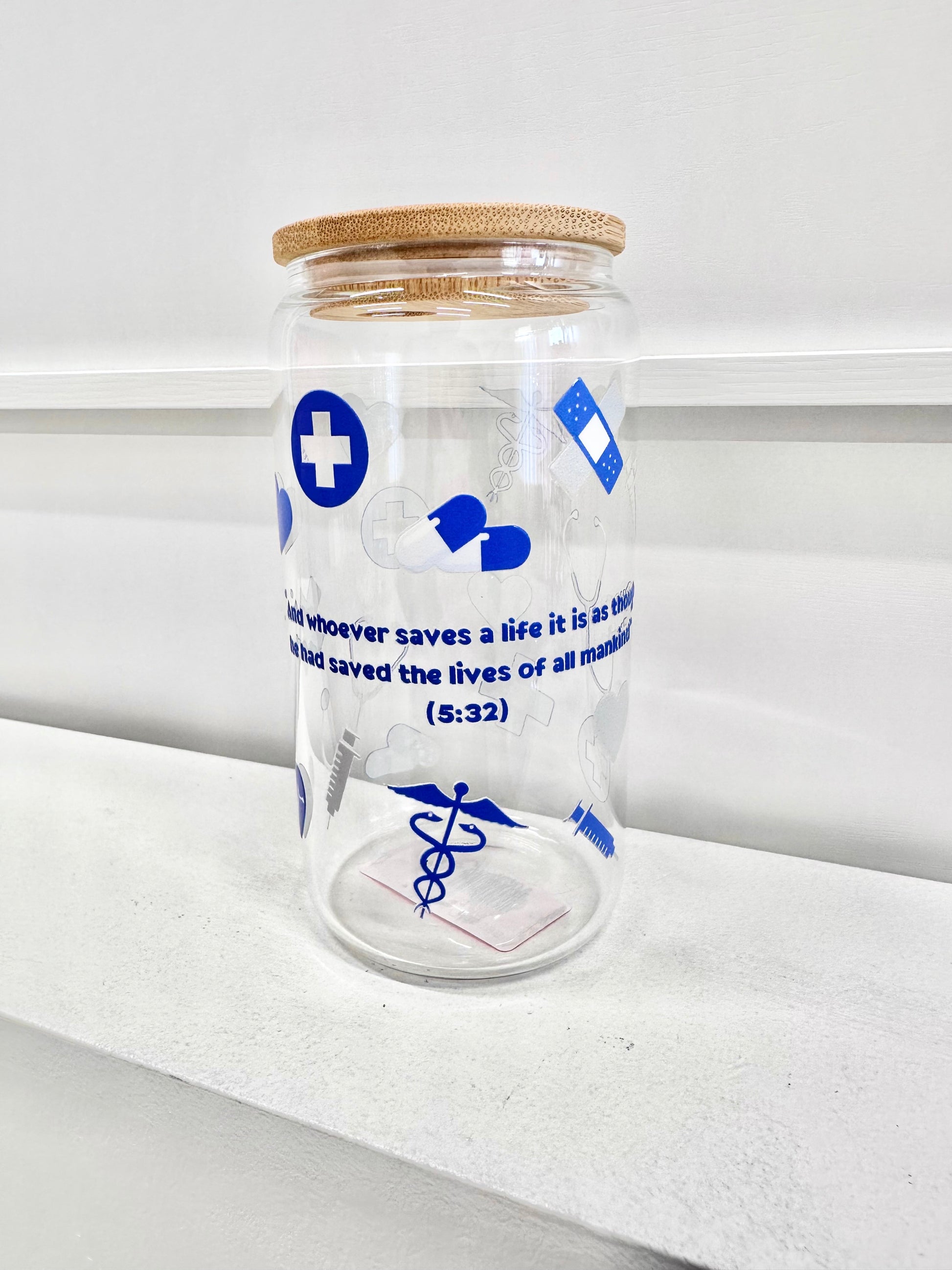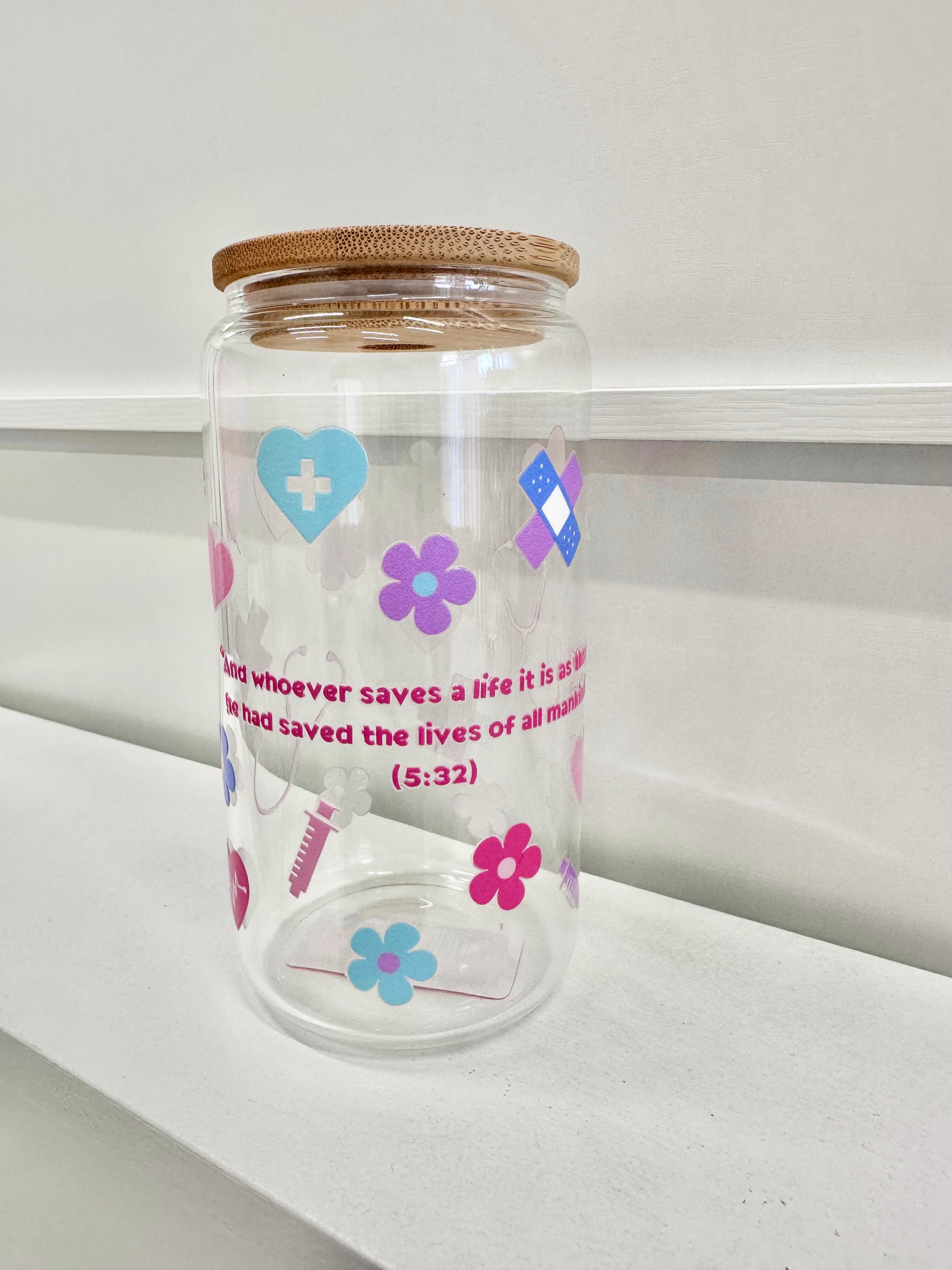 Start your day with a refreshing 16oz coffee in this stylish glass with a bamboo lid and reusable plastic straw. Keep your drink cool as you take on the day. Not dishwasher safe.