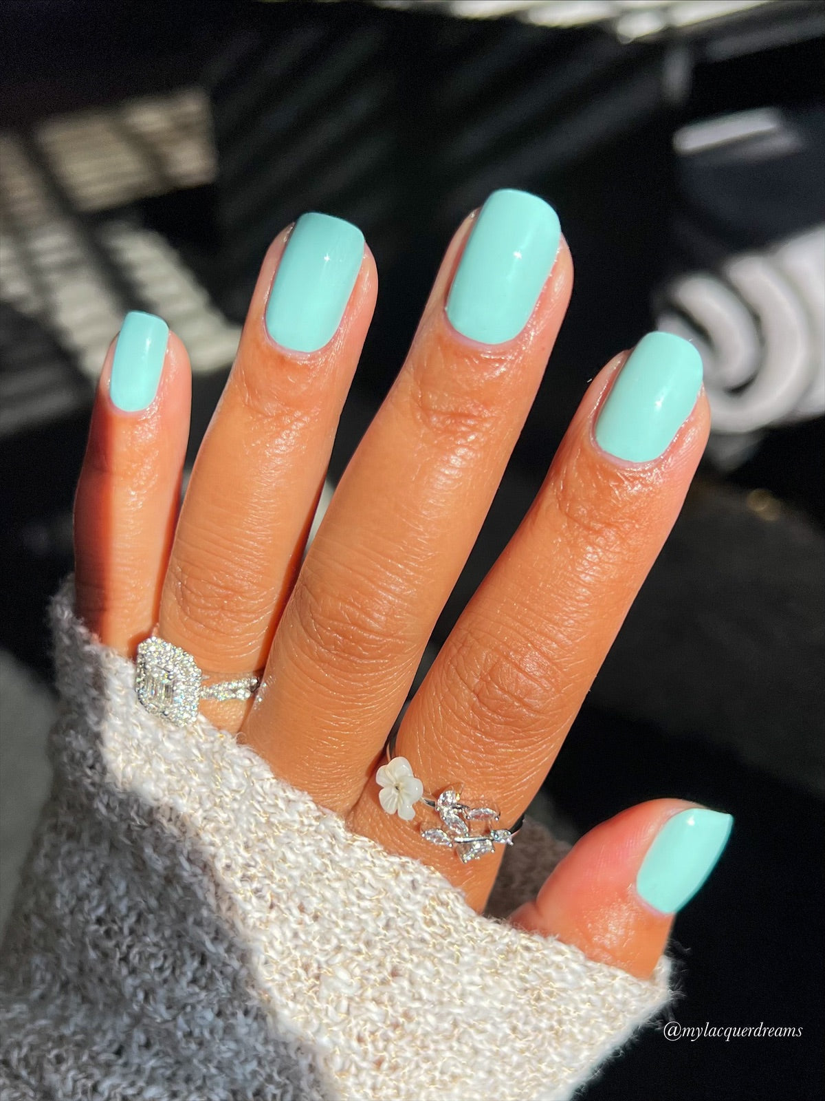 Patagonia is a light, mint aquamarine halal nail polish. Patagonia is more green toned than Azores.