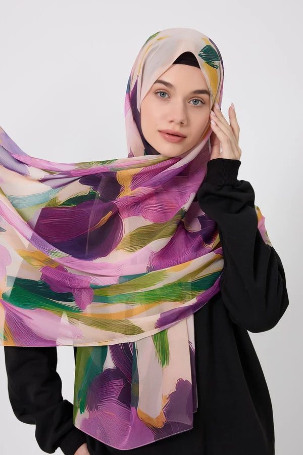 Akoya Printed Chiffon Hijab is crafted from premium textured chiffon that flows with grace and holds with ease. Each print is more than a pattern, it’s a story you wear. A reflection of moods, memories, and moments, expressed through color and form.