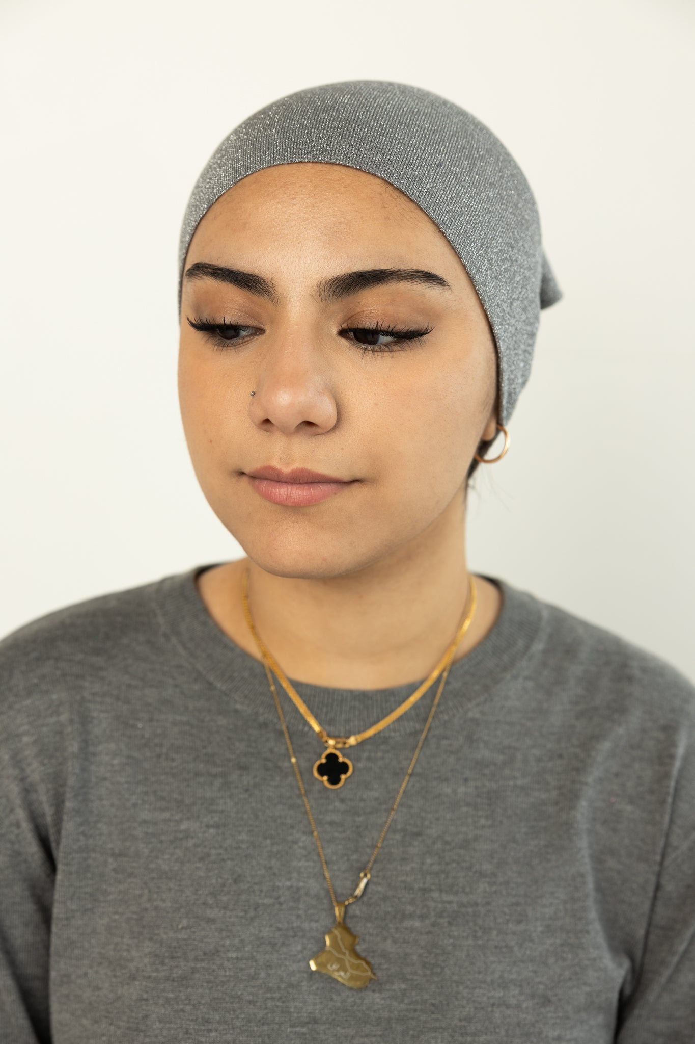 Shimmer under caps are the perfect choice for your next special occasion! Crafted with a soft, stretchy material for easy styling. Shimmer under caps are woven with silver metallic thread. A choice of colors available!