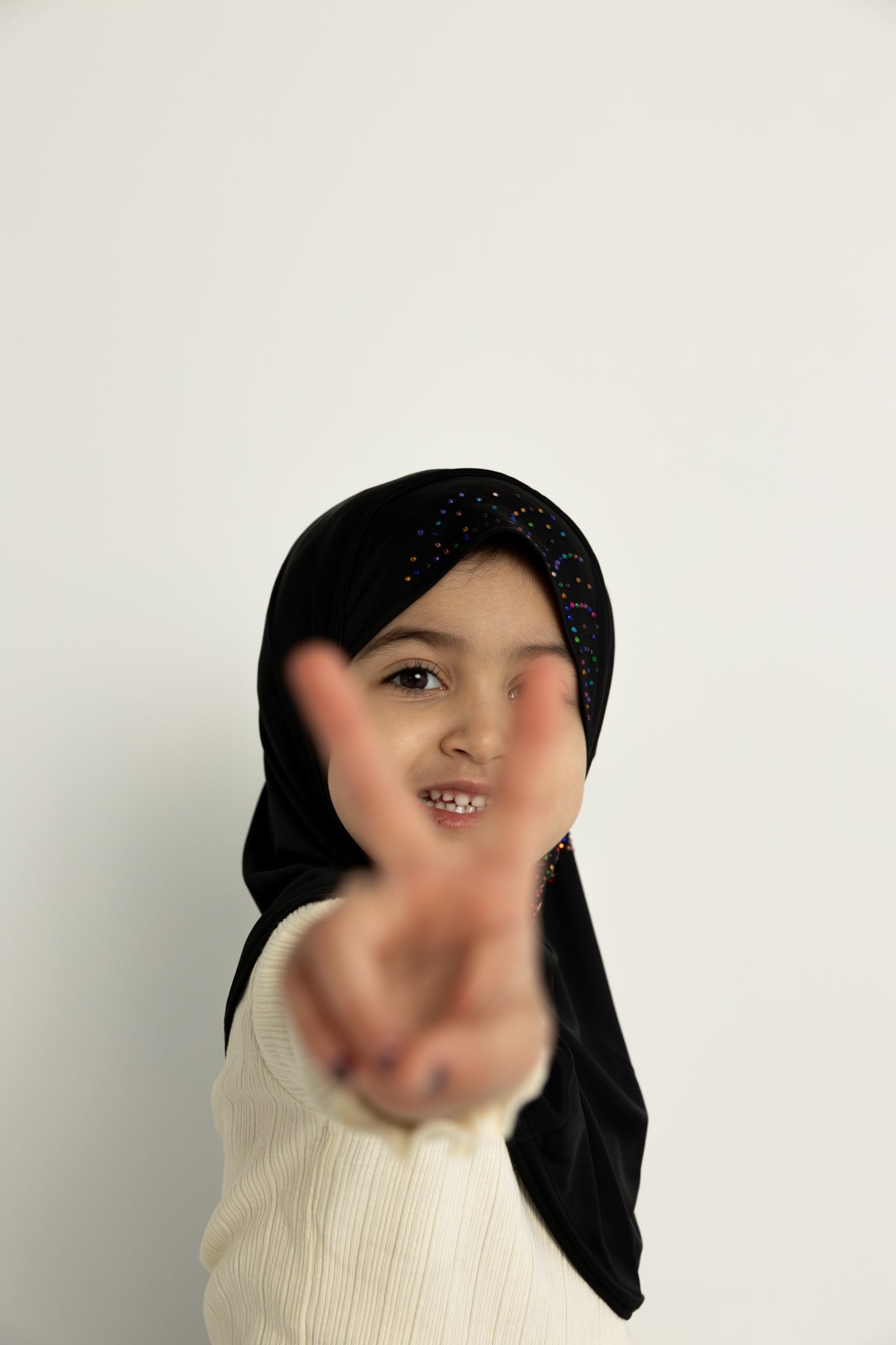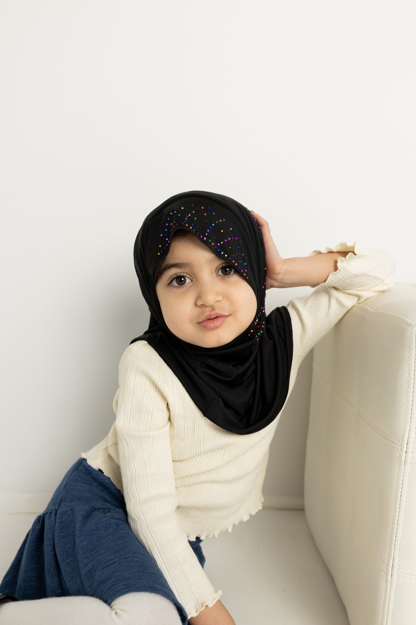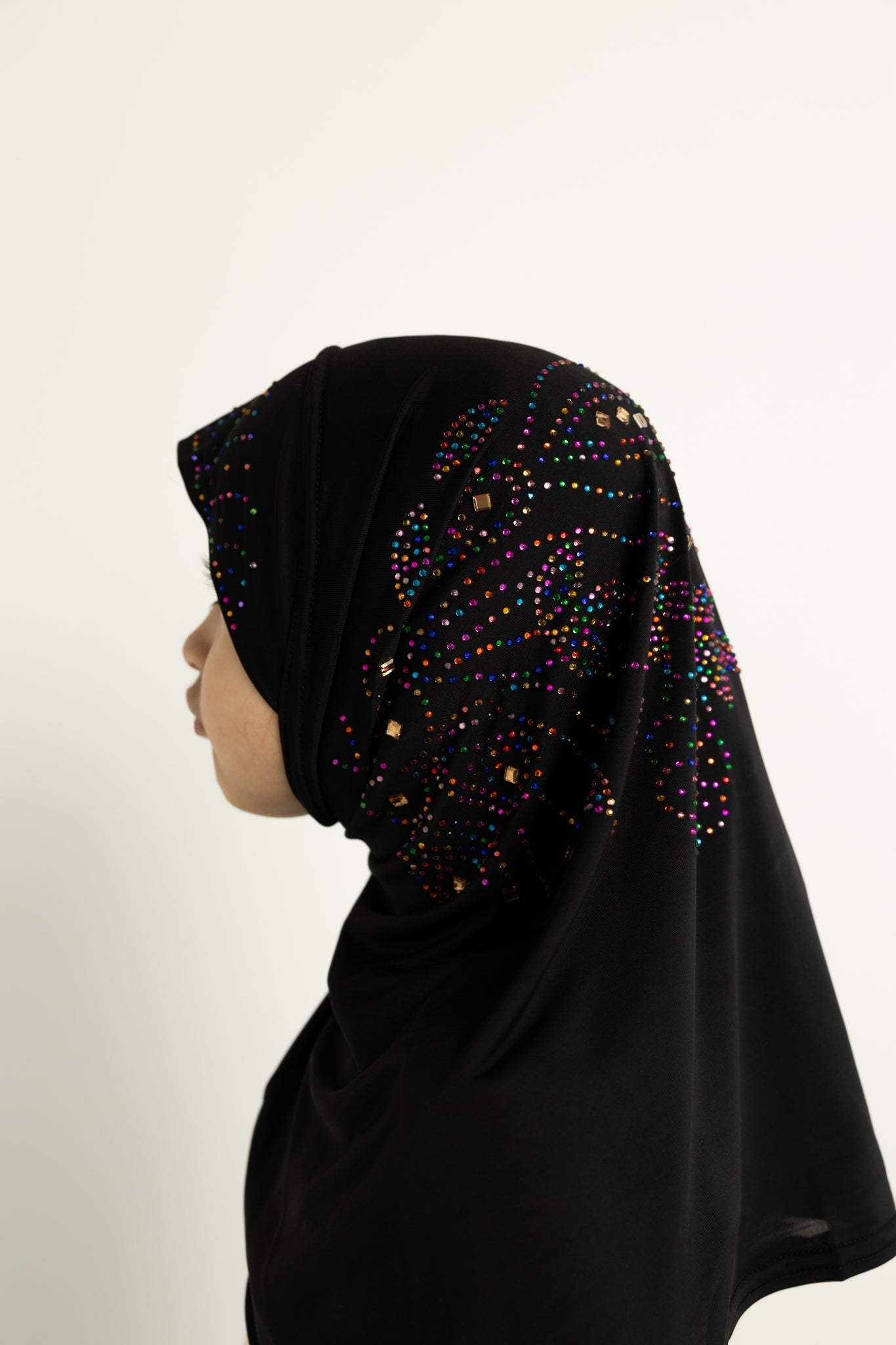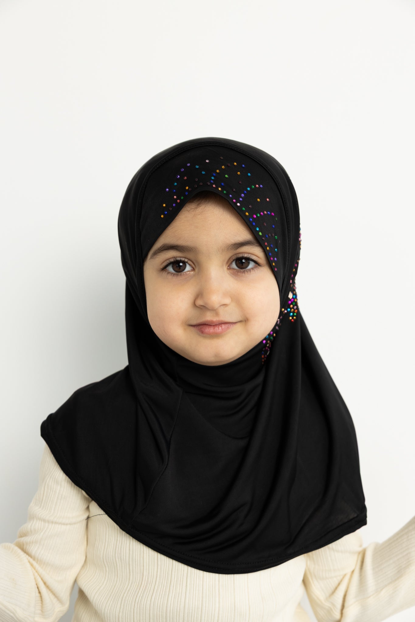 Have your girls practice hijab at a young age! Each hijab is designed with embroidery, applique florals, and hotfixed jewels. Perfect for visits at the masjid, holidays, and Islamic schools.