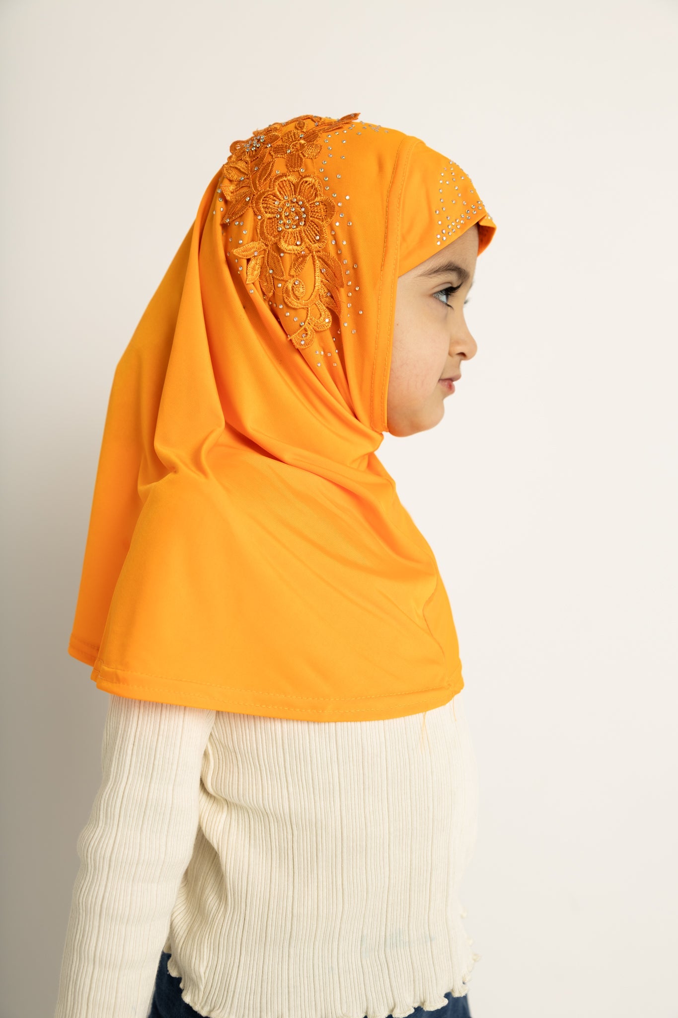 Have your girls practice hijab at a young age! Each hijab is designed with embroidery, applique florals, and hotfixed jewels. Perfect for visits at the masjid, holidays, and Islamic schools.
