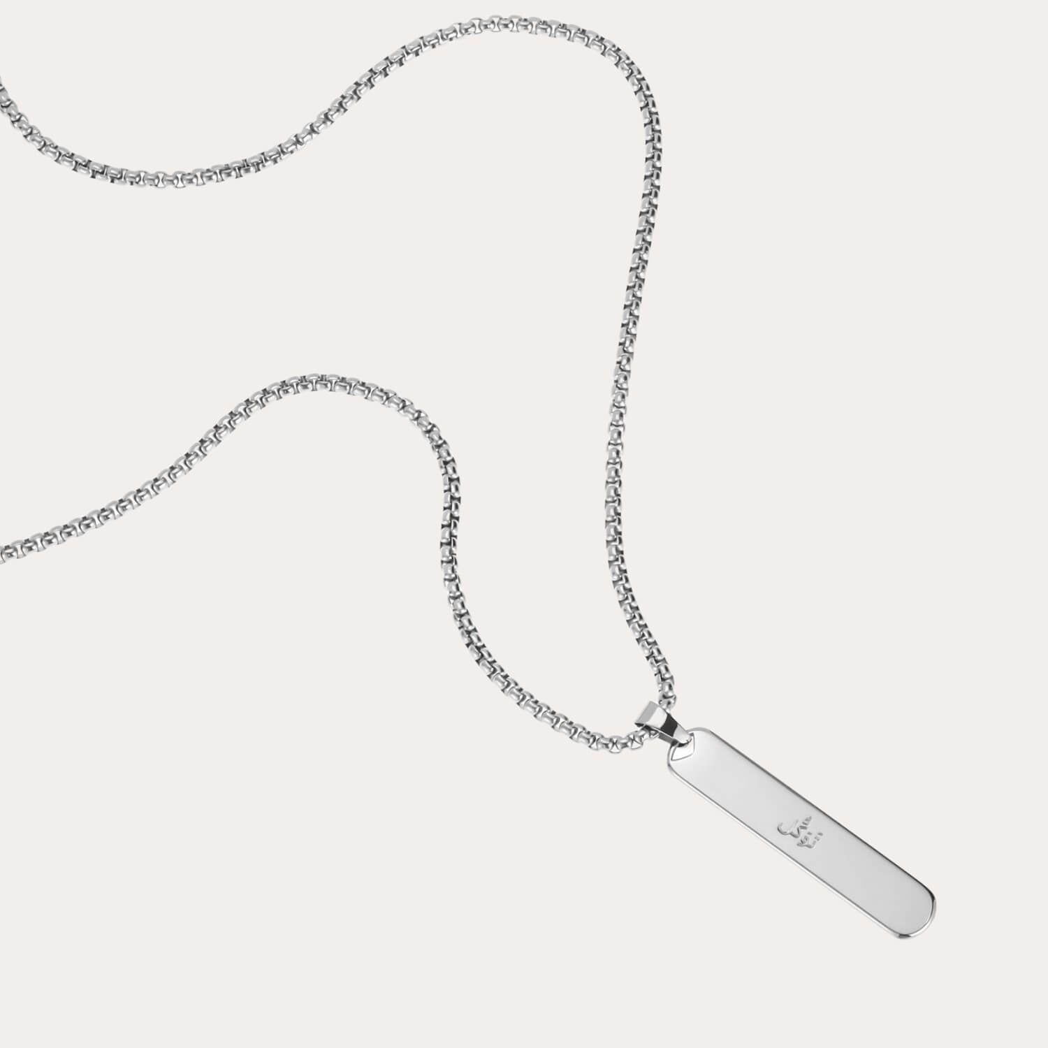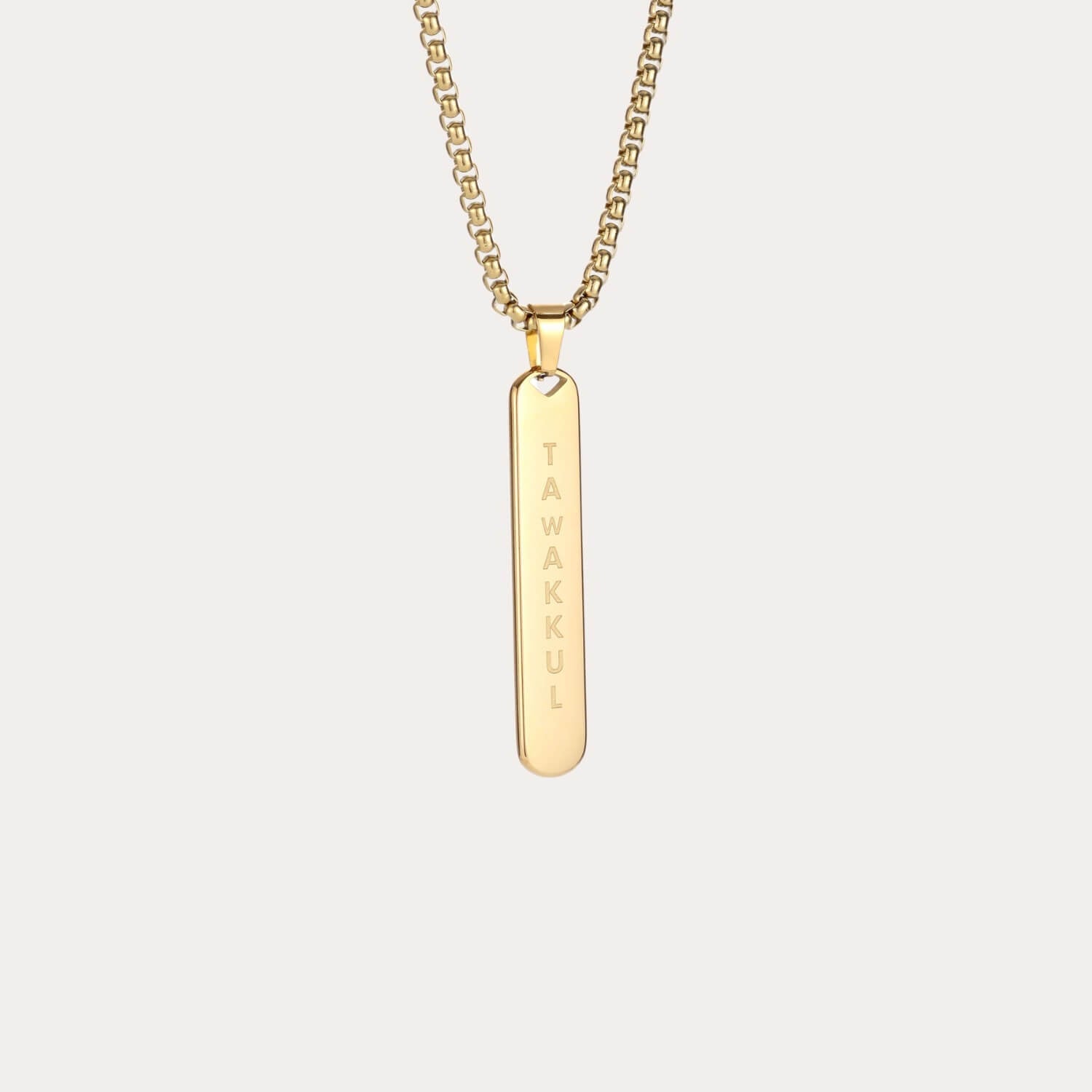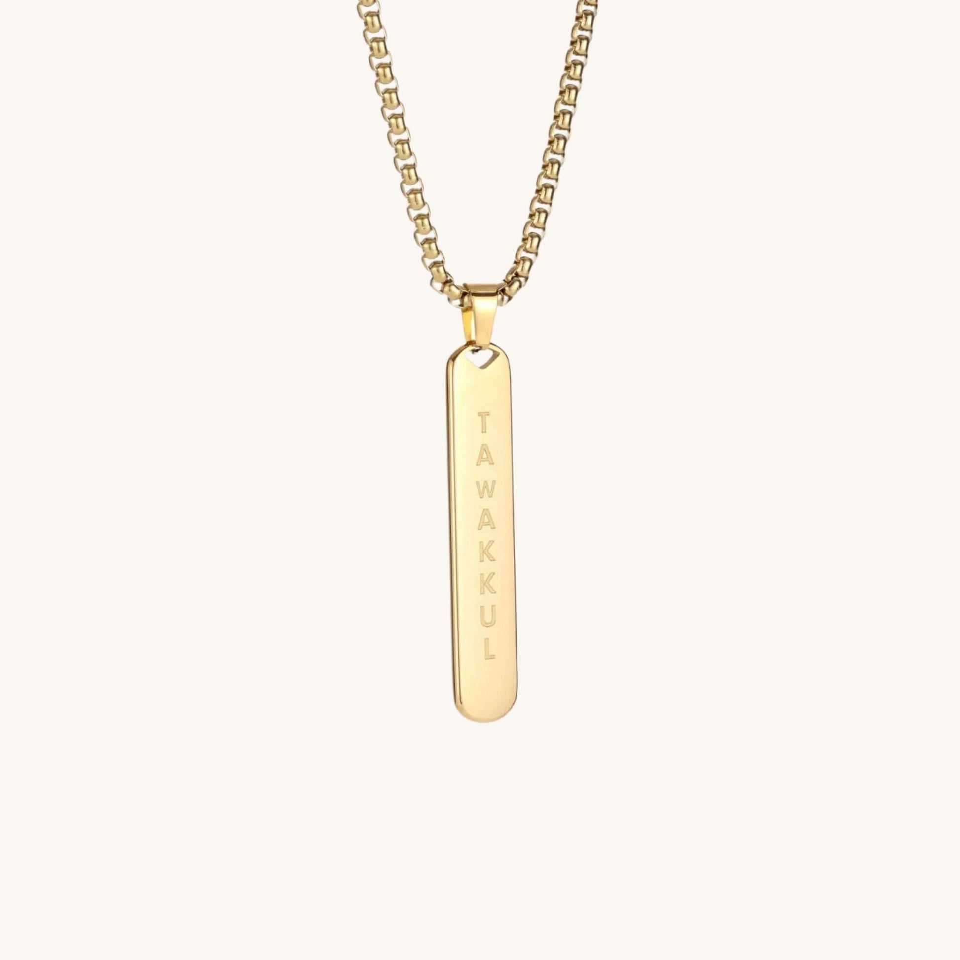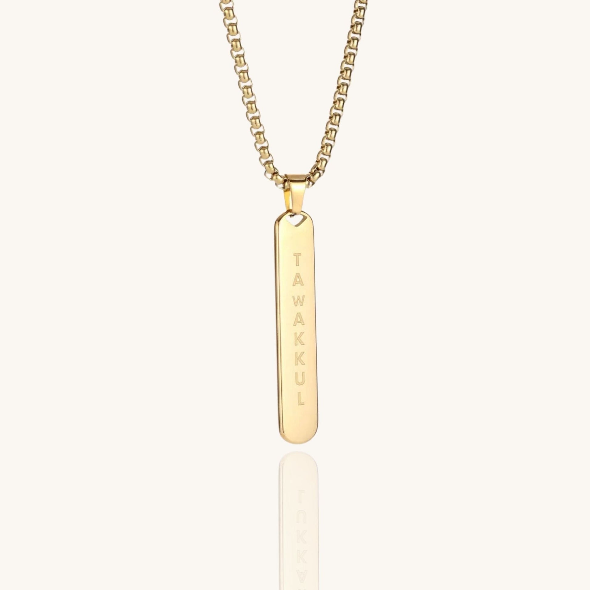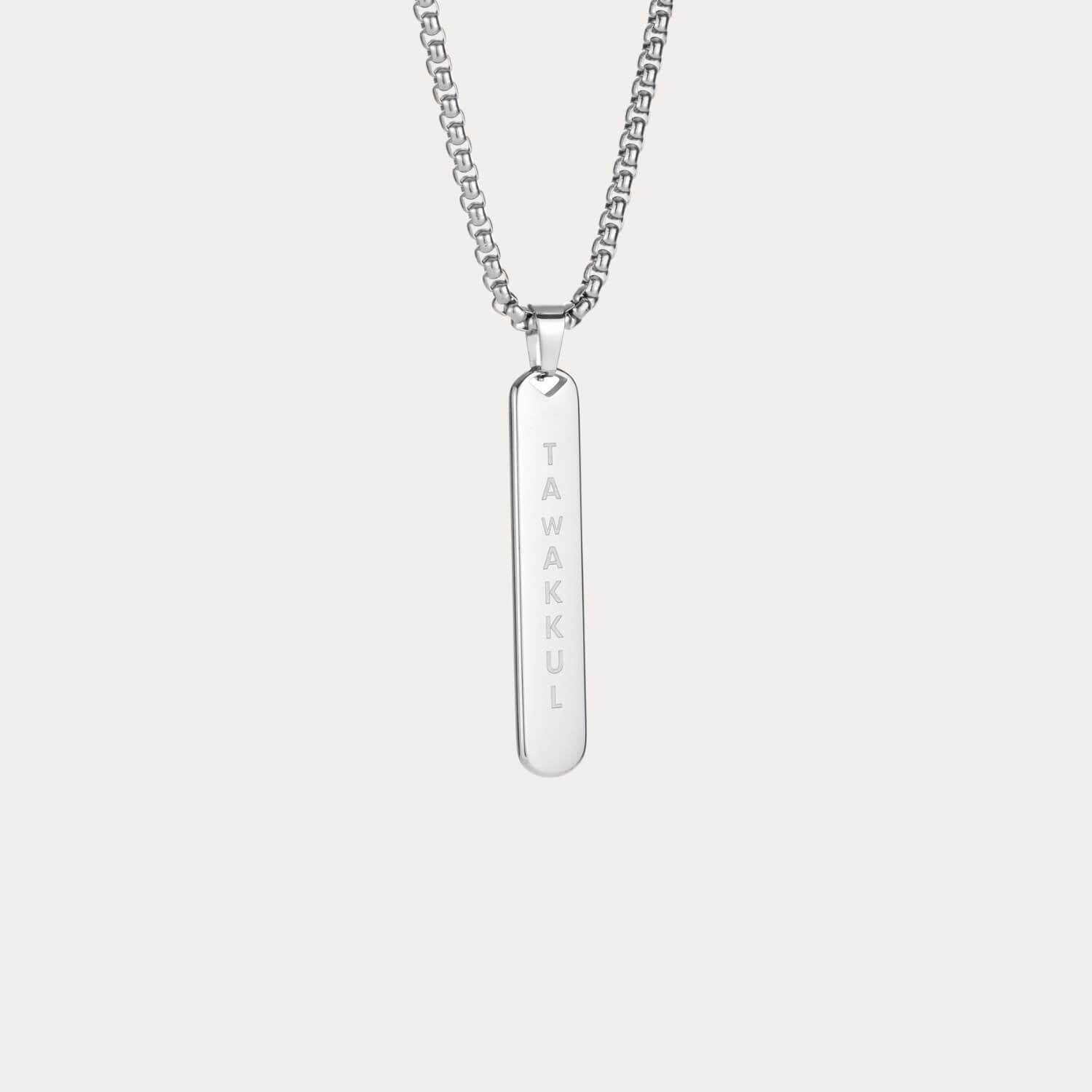 This elegant Tawakkul Tag Necklace features a sleek, minimalist design with a tag pendant engraved with the word "Tawakkul".