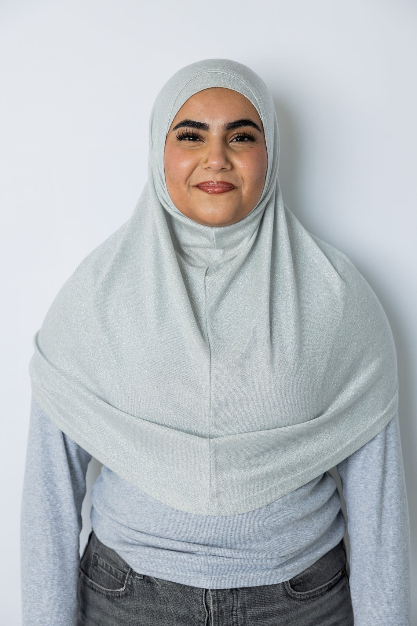 The Extra Long Shimmer Jersey Amira Hijab offers more coverage than the standard Amira Hijab. For most women, the hijab covers the chest and shoulders. The Amira hijab is easy to wear and does not require the use of any hijab pins. This is the perfect hijab for beginners, or for those on the go and need a quick hijab to slip on. The shimmer detail is perfect for occasions and matching elegant wear.