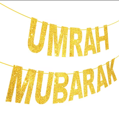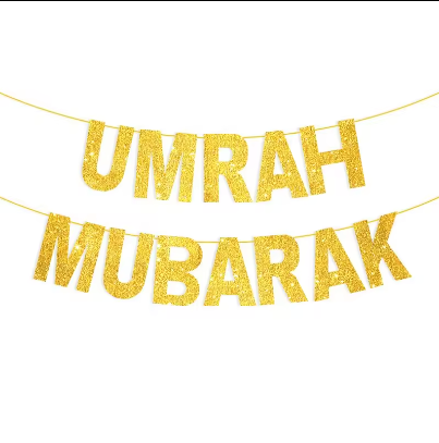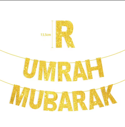 Umrah mubarak cardstock banner, letters are approximetly 13.5cm in height.