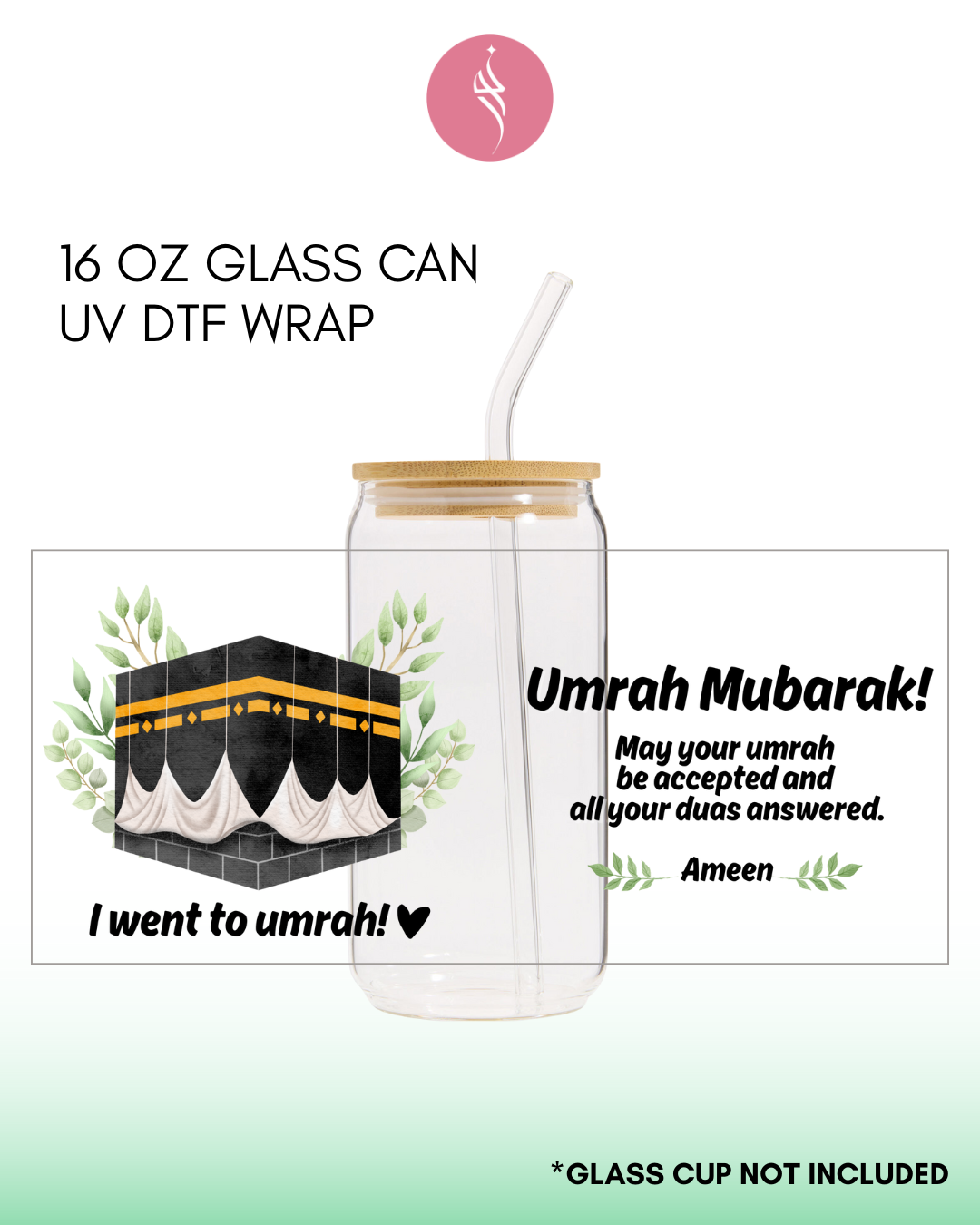 This listing is for one UV DTF adhesive sticker (recommended for 16oz Glass size)
