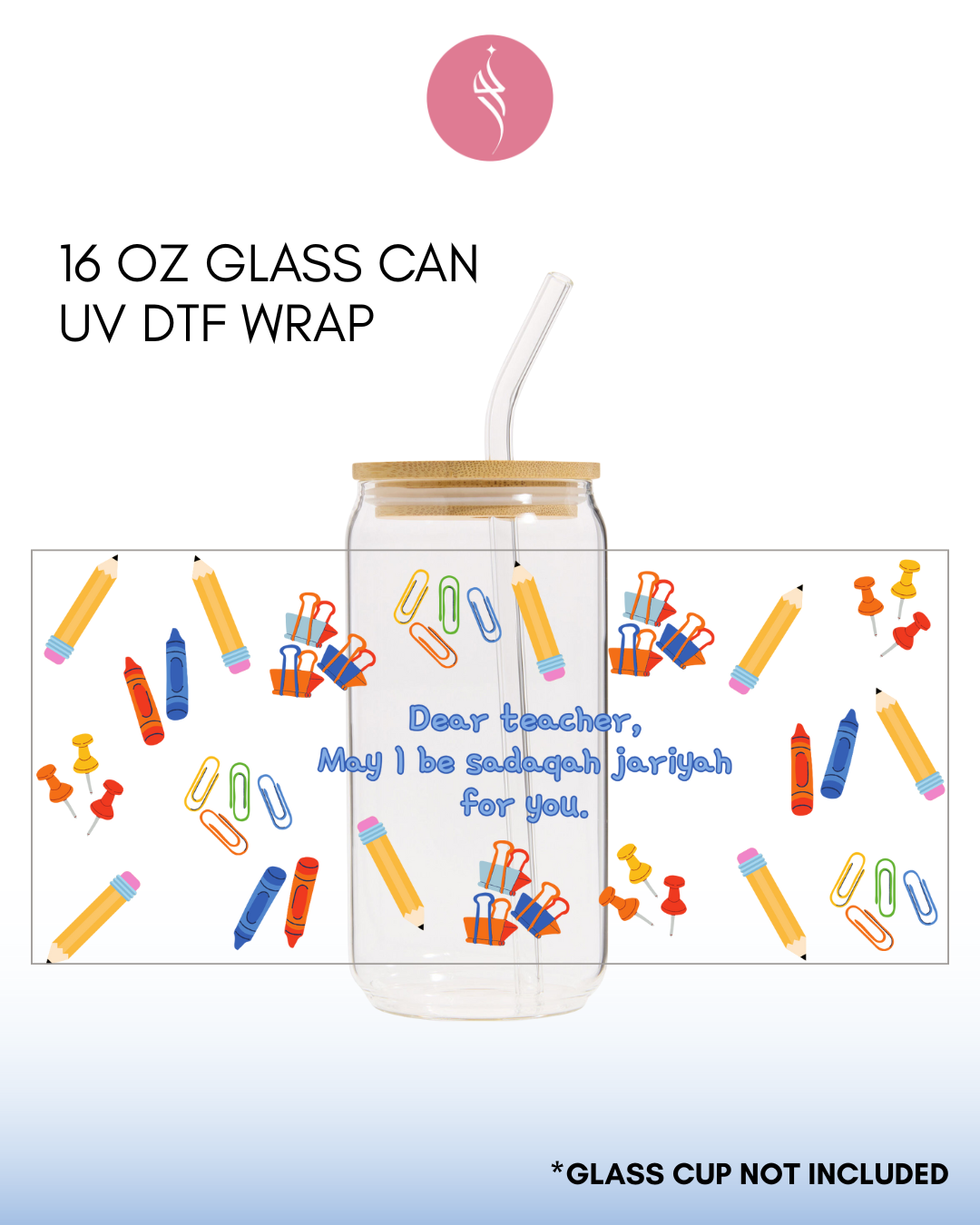 This listing is for one UV DTF adhesive sticker (recommended for 16oz Glass size)