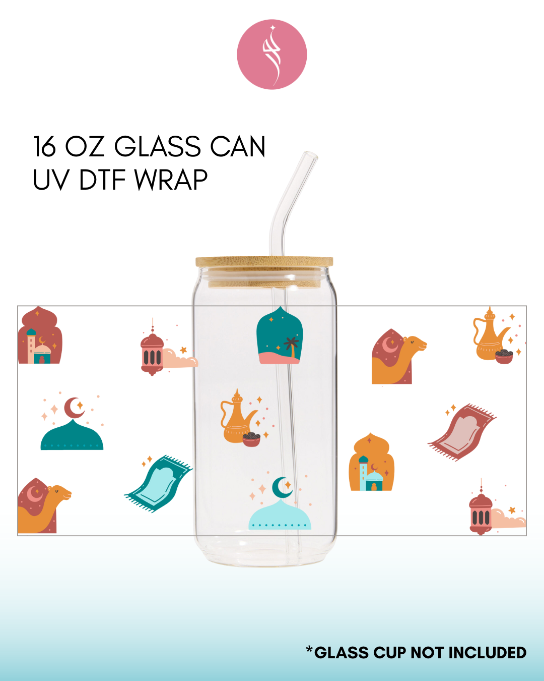 This listing is for one UV DTF adhesive sticker (recommended for 16oz Glass size)