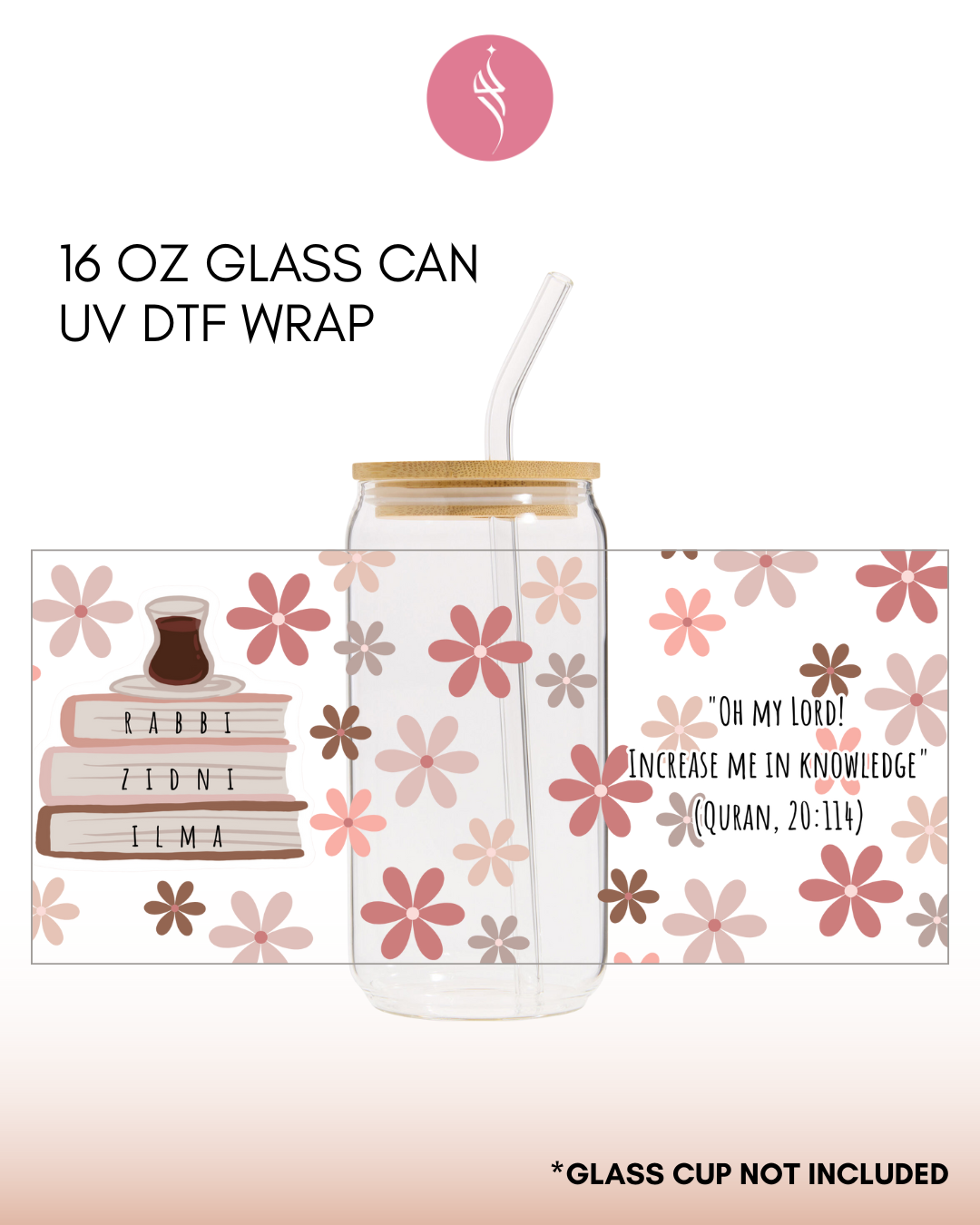 This listing is for one UV DTF adhesive sticker (recommended for 16oz Glass size)