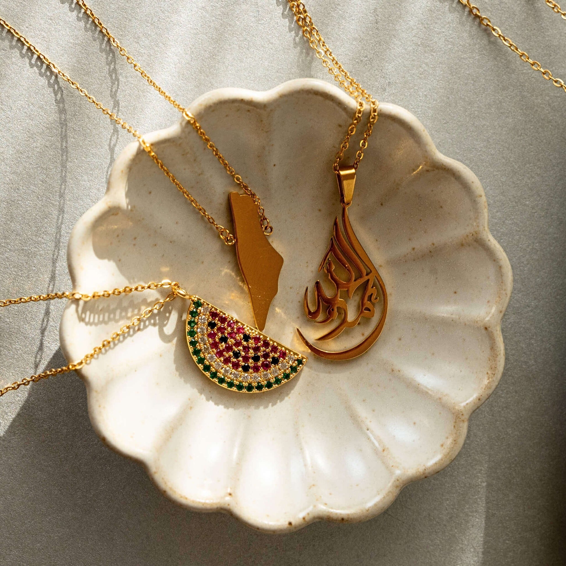 Crafted from durable stainless steel with an 18K gold finish, this necklace is a powerful tribute to Palestine's strength and perseverance.